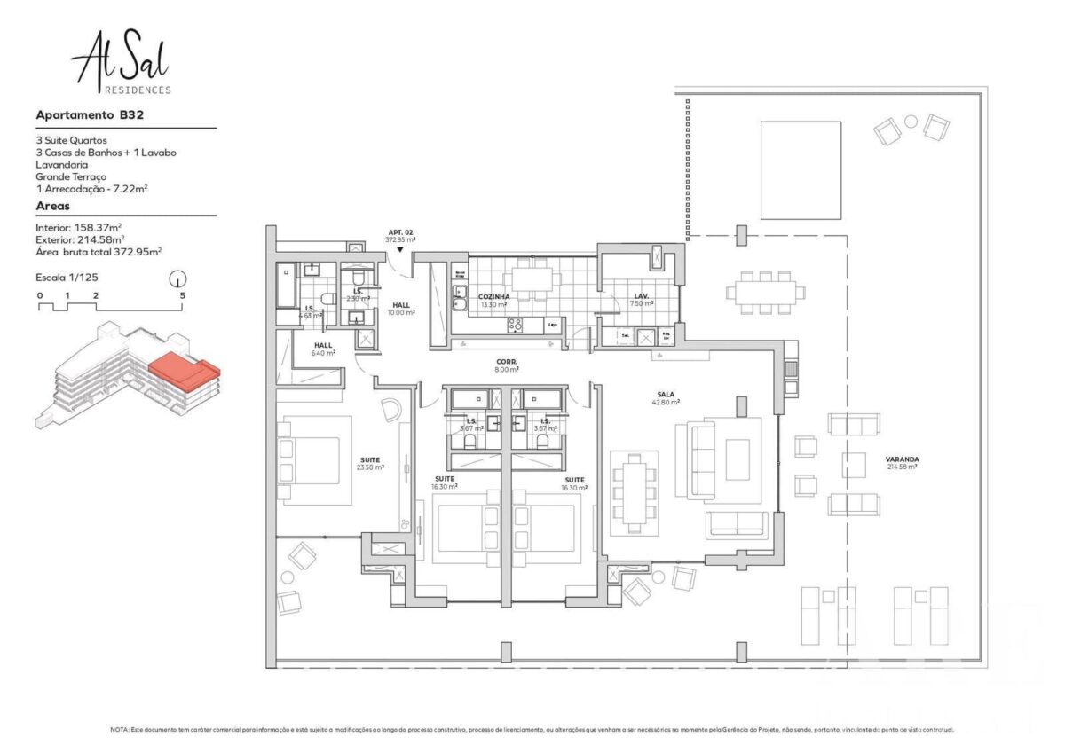 Appartement à vendre à Alcochete, Setubal, Portugal, avec 3 chambres et vue jardin. Immeuble résidentiel haut de gamme. Cet appartement de plain-pied est un penthouse au dernier étage, offrant une surface intérieure de 158,37 m². Il bénéficie d’une orientation ouest, maximisant l’ensoleillement naturel.