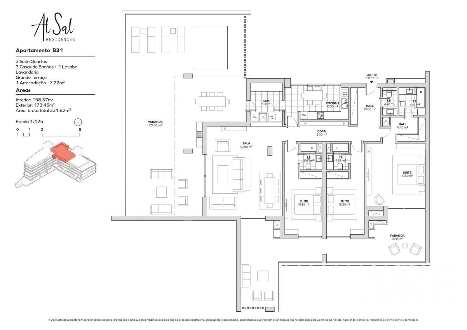 Cet appartement de plain-pied est un penthouse au dernier étage, offrant une surface intérieure de 158,37 m². Il est situé dans le développement Al Sal Residences, prévu pour être achevé en 2025. L’appartement est orienté sud-ouest, maximisant l’ensoleillement naturel. Il dispose de 4 salles de bains, de balcons, et d’une piscine extérieure, idéale pour se détendre.