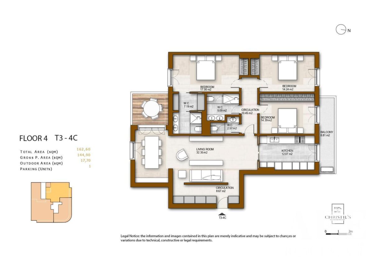 Cet appartement de plain-pied comprend une surface intérieure de 144,9 mètres carrés. Il est situé dans le développement Outubro 77, prévu pour être achevé en 2025. L’appartement est orienté sud, ce qui permet une bonne luminosité naturelle tout au long de la journée. Bien que cet appartement ne dispose pas de piscine ou de jardin, il est équipé de balcons qui offrent un espace extérieur agréable.