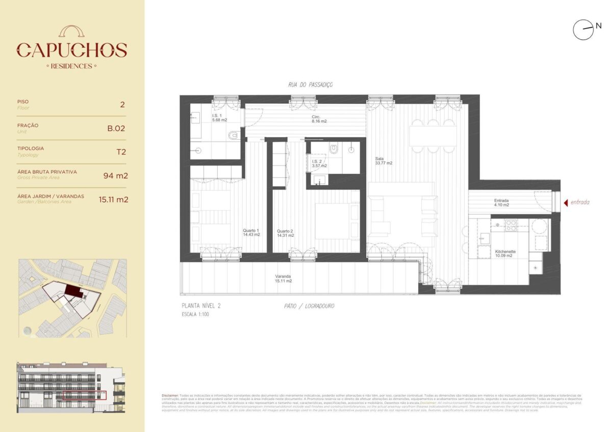 Appartement à vendre à Campo Mártires da Pátria, Lisbonne, Grand Lisbonne, Portugal, avec 2 chambres et vue jardin. Immeuble résidentiel Premium. Cet appartement de plain-pied est situé au deuxième étage du développement Capuchos Residences. Il dispose d’une surface intérieure de 94 m², offrant un espace de vie confortable et bien agencé. L’appartement est orienté à l’est, ce qui permet de profiter de la lumière naturelle tout au long de la matinée.