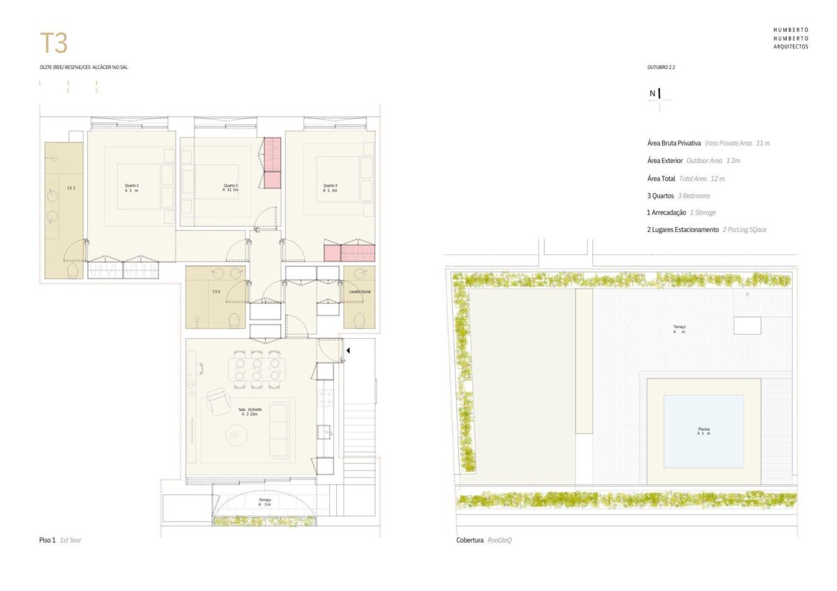 Appartement à vendre à Alcacer do Sal, Setubal, Portugal, avec 3 chambres et vue piscine. Immeuble résidentiel haut de gamme.