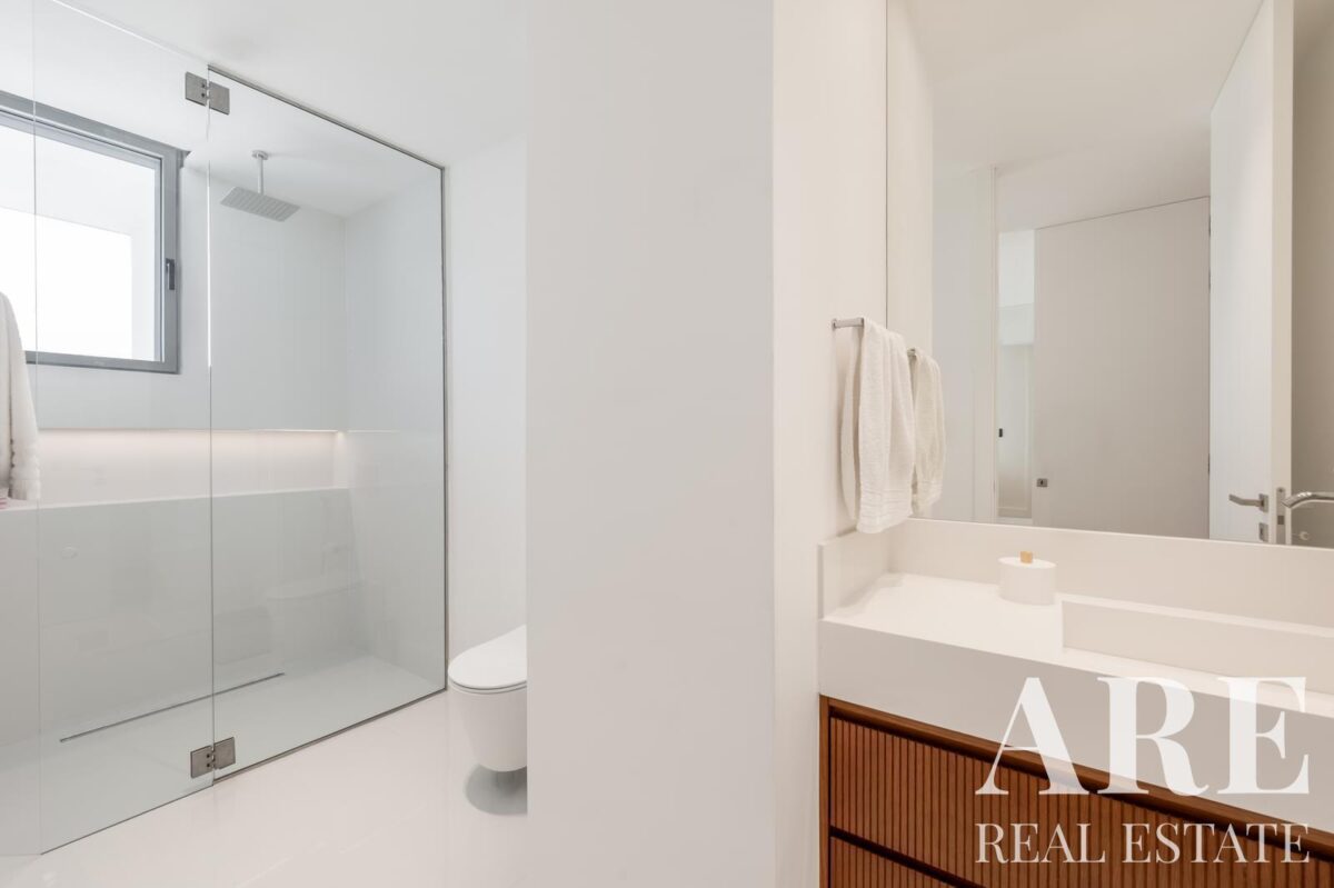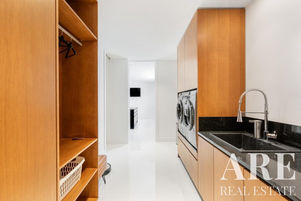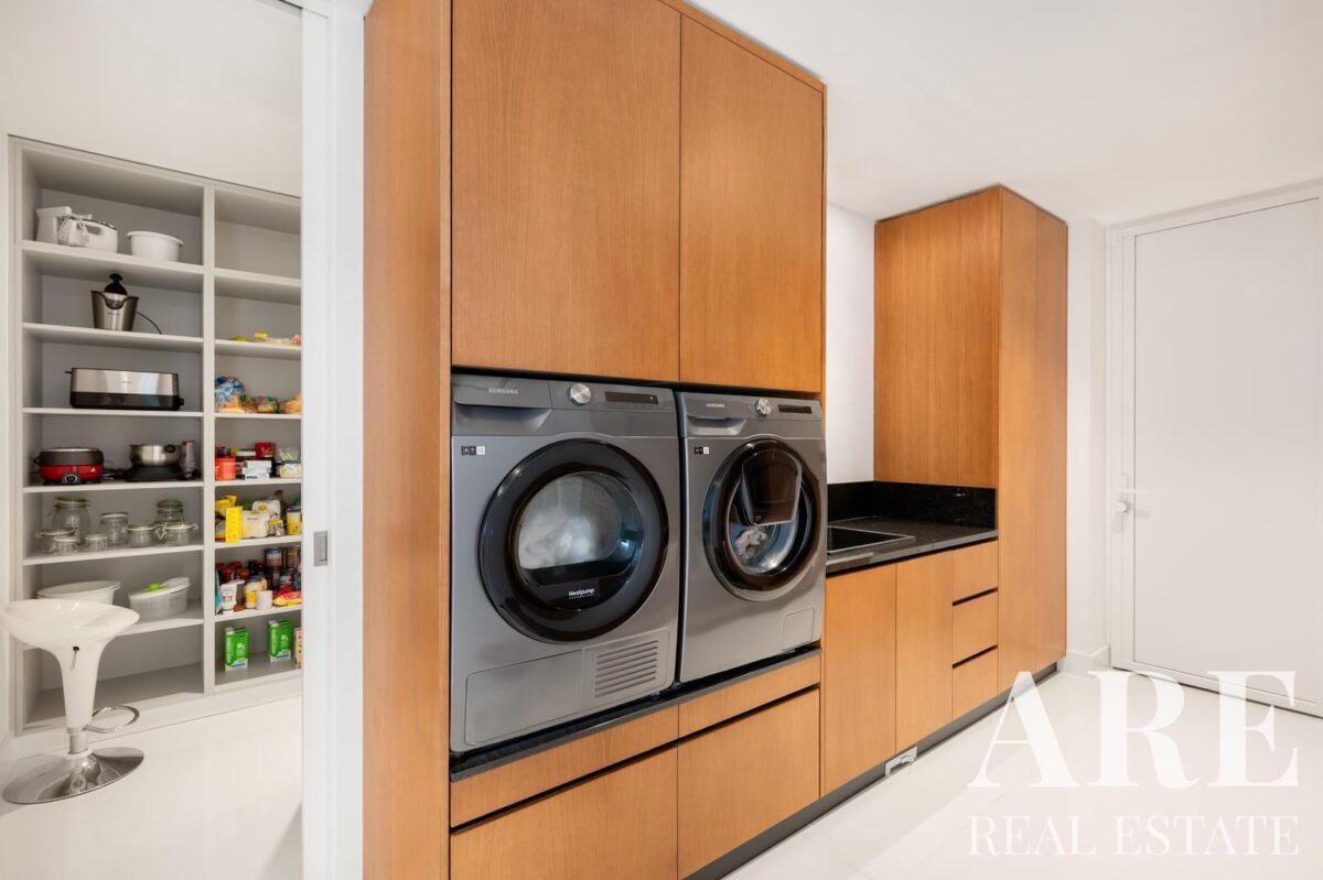La villa est équipée d’un garage pouvant accueillir deux voitures, ainsi qu’un espace de rangement supplémentaire. Un parking extérieur est également disponible. La sécurité est assurée par une équipe dédiée. Des panneaux solaires sont installés pour le chauffage de l’eau, contribuant à une efficacité énergétique de classe A. Le système de son est contrôlé individuellement dans chaque pièce, et des volets électriques sont présents partout.