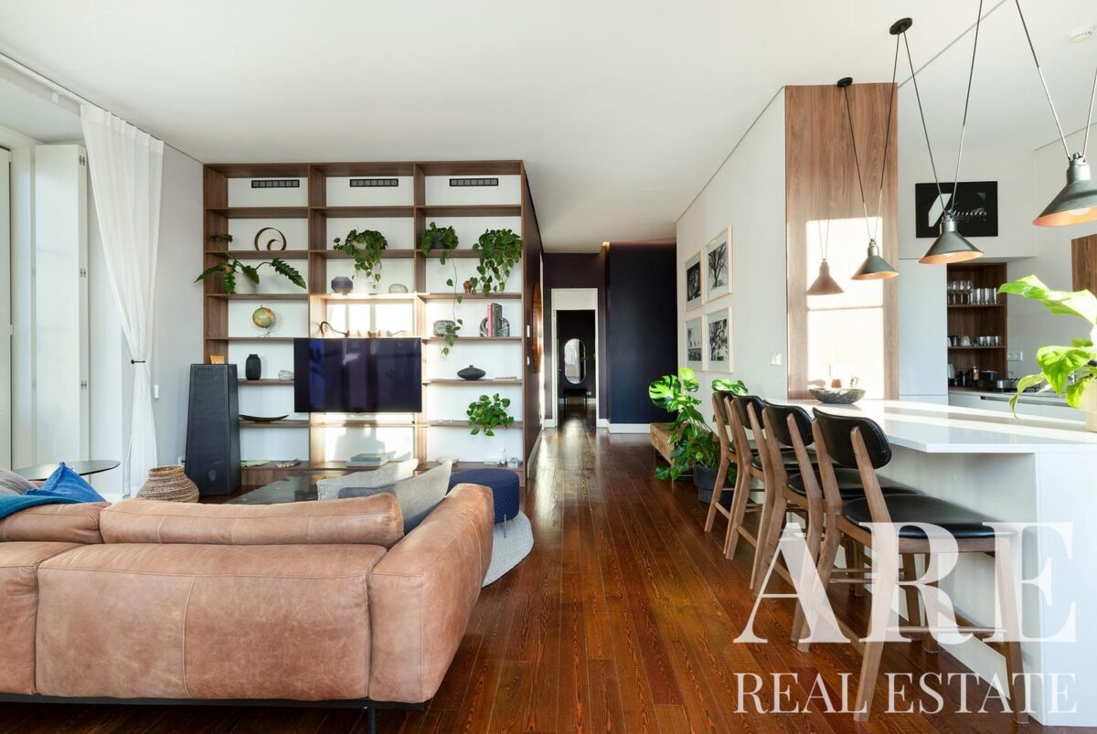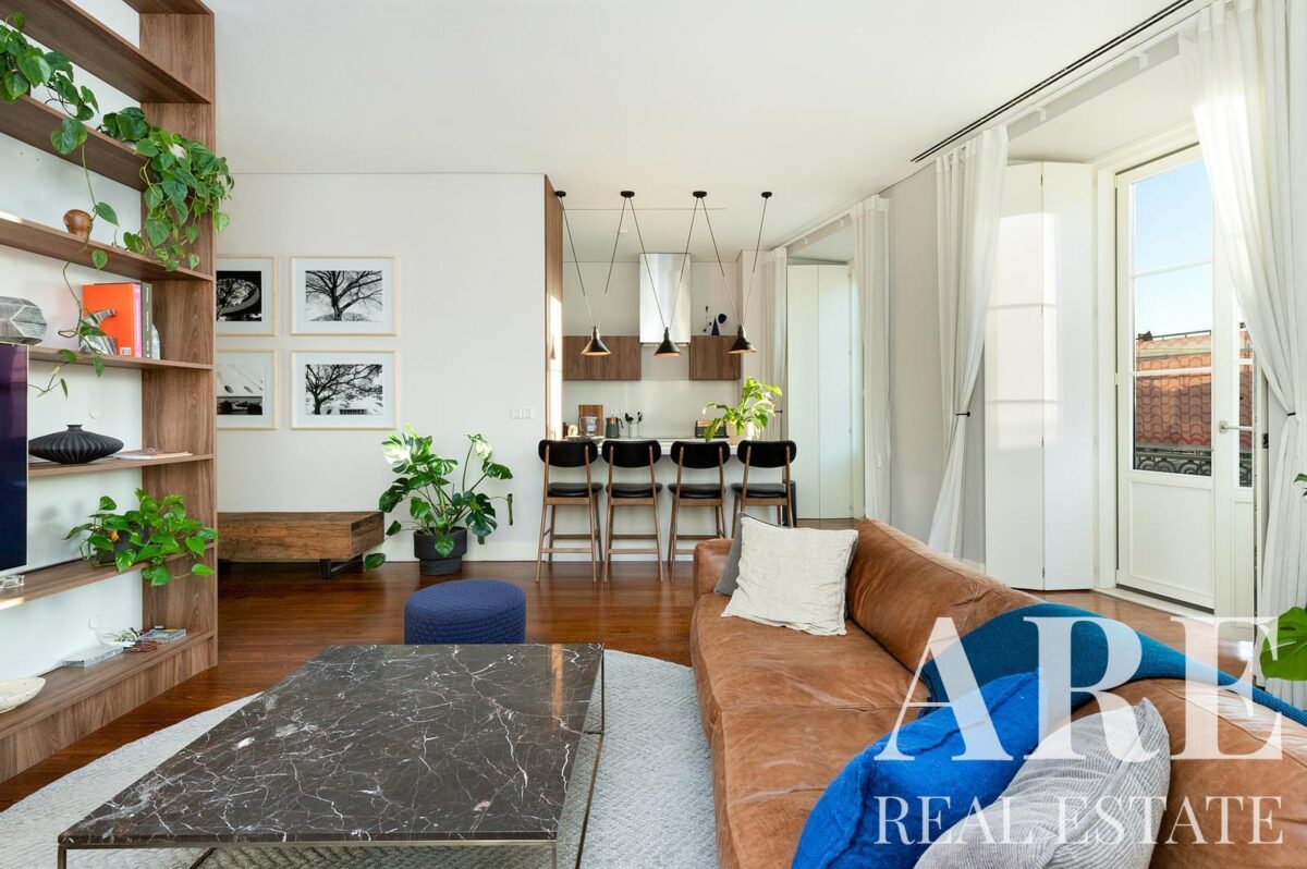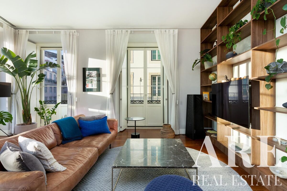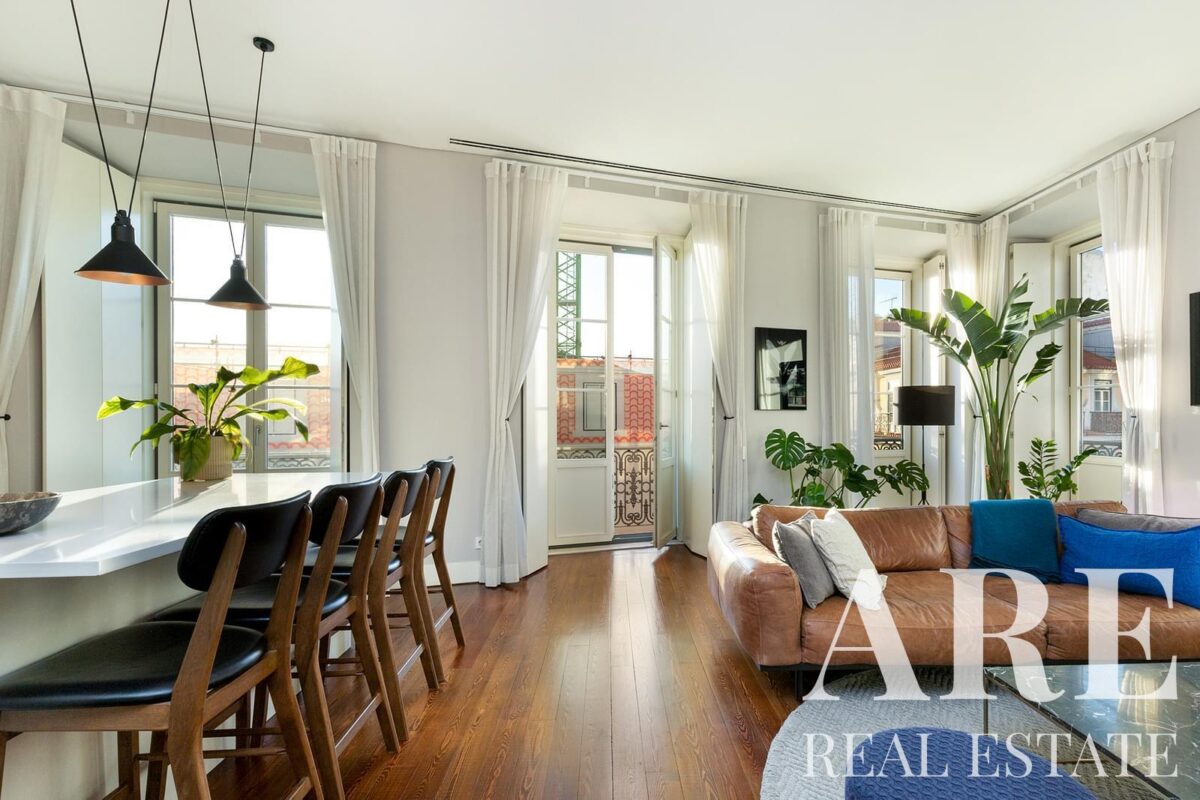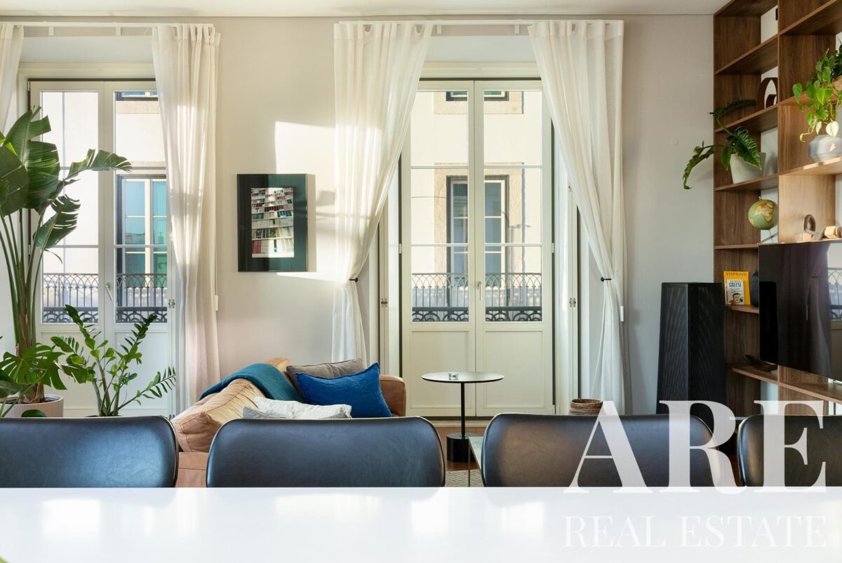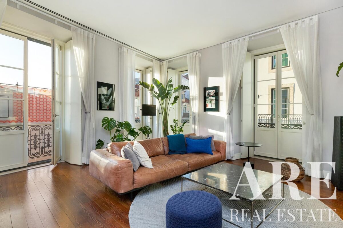 Apartment for sale located in Chiado, Lisbon. This premium 2-bedroom, 2-bathroom apartment is a single-storey unit with a total interior area of 119.6 m². The property offers a river view, south-facing orientation, balconies, one garage space, air conditioning, and is held under full ownership. Available for sale with Lisbon Property for the asking price of € 1 375 000.