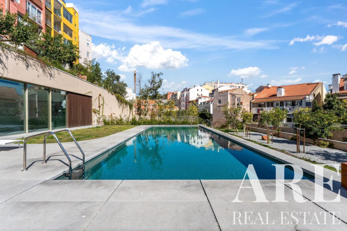 Apartment for sale in Jardim da Glória development, in Graça, Lisbon, Greater Lisbon, Portugal, with 2 bedrooms and pool views. Premium residential property.