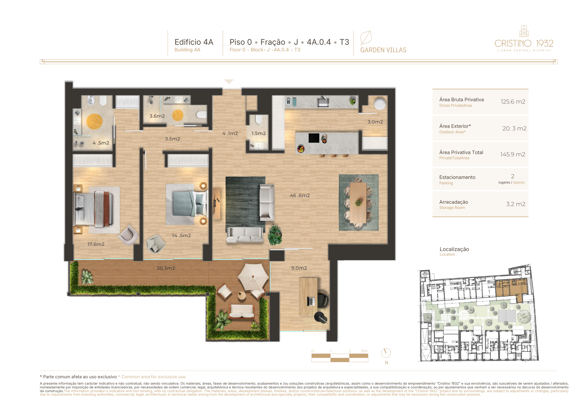 Apartment for sale located in Saldanha, Lisboa, Greater Lisbon. This premium 3-bedroom, 3-bathroom apartment belongs to the Cristino 1932 development and is a single-storey unit on the ground floor, with a total interior area of 125.6 m². The property offers a garden view, south-facing orientation, balconies, two garage spaces, one storage room, lift access, air conditioning, and solar panels for water heating. The development launched in 2025, construction will be completed in 2028, and the property is held under full ownership. Available for sale with Lisbon Property for the asking price of € 1 142 000.