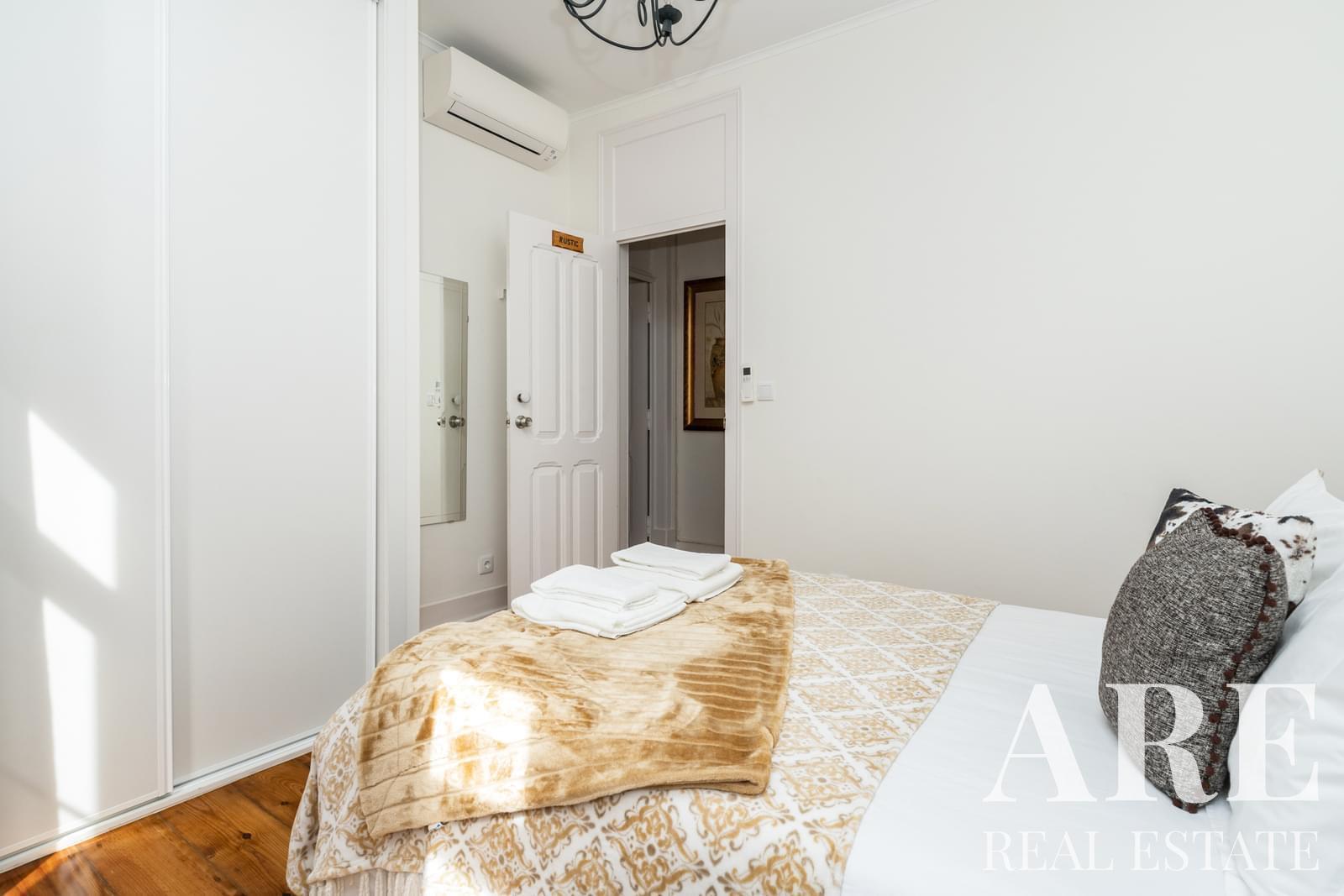 The apartment features original wooden flooring, wooden shutters on all windows, and air conditioning in all rooms. One of the bedrooms is en-suite.