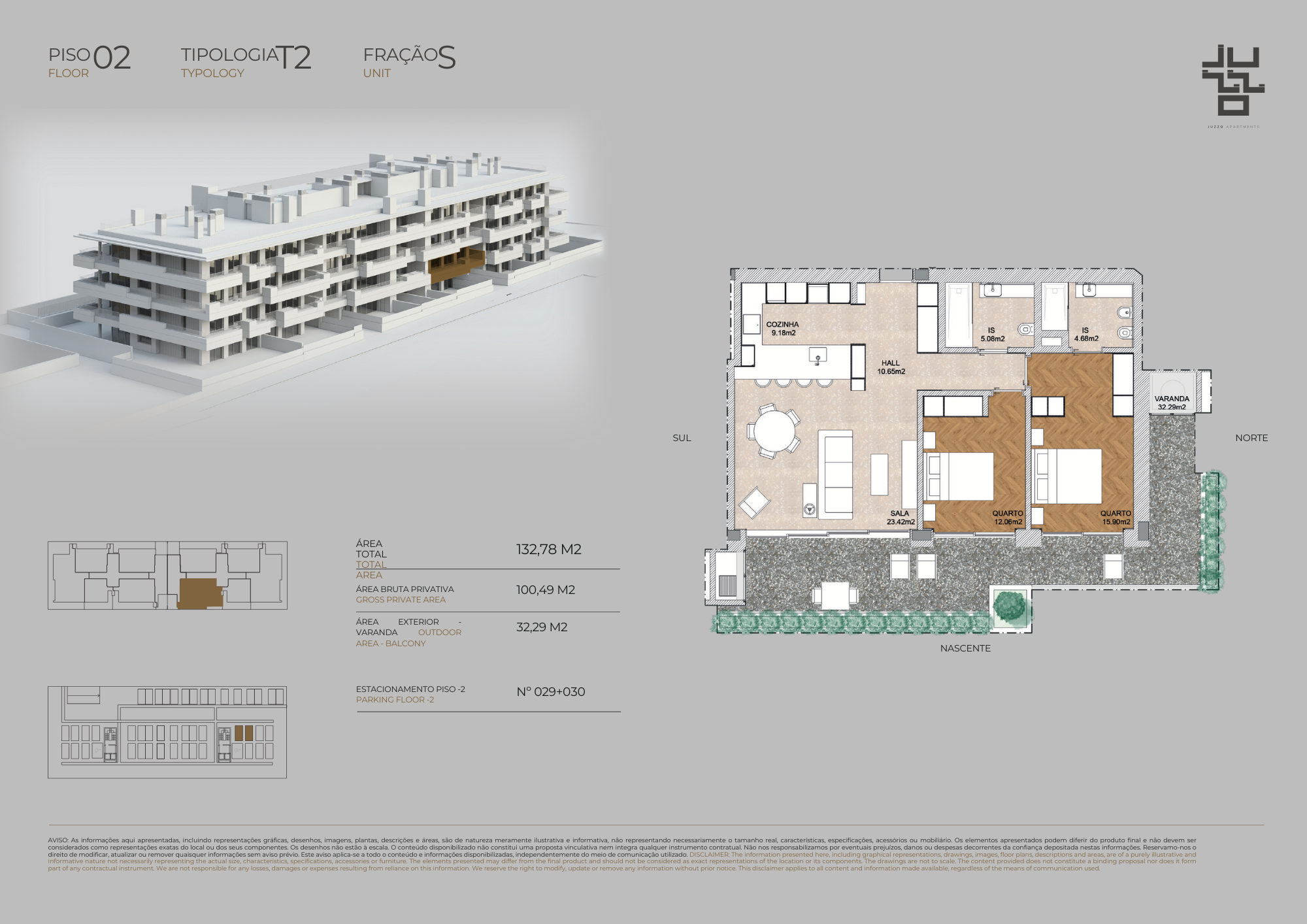 Apartment for sale located in Aldeia de Juzo, Cascais, Lisbon. This premium 2-bedroom, 2-bathroom apartment belongs to the Juzzo Apartments development and is a single-storey unit on the second floor, with a total interior area of 100.49 m². The property offers a garden view, north-east facing orientation, balconies, an outdoor heated pool, two garage spaces, air conditioning, lift access, CCTV video surveillance, solar panels for water heating, electrical shutters in every room, and a gymnasium equipped with fitness machines. The property is held under full ownership. Available for sale with Lisbon Property for the asking price of€ 860 000.