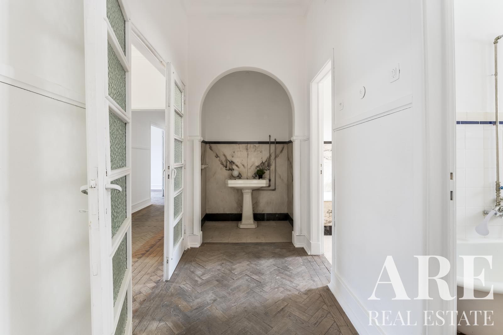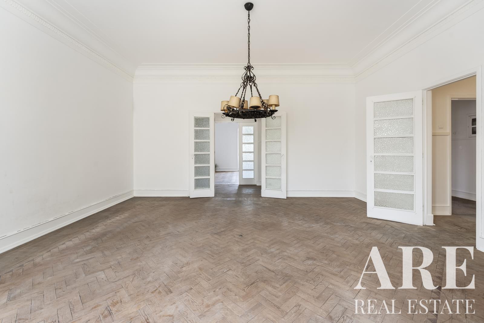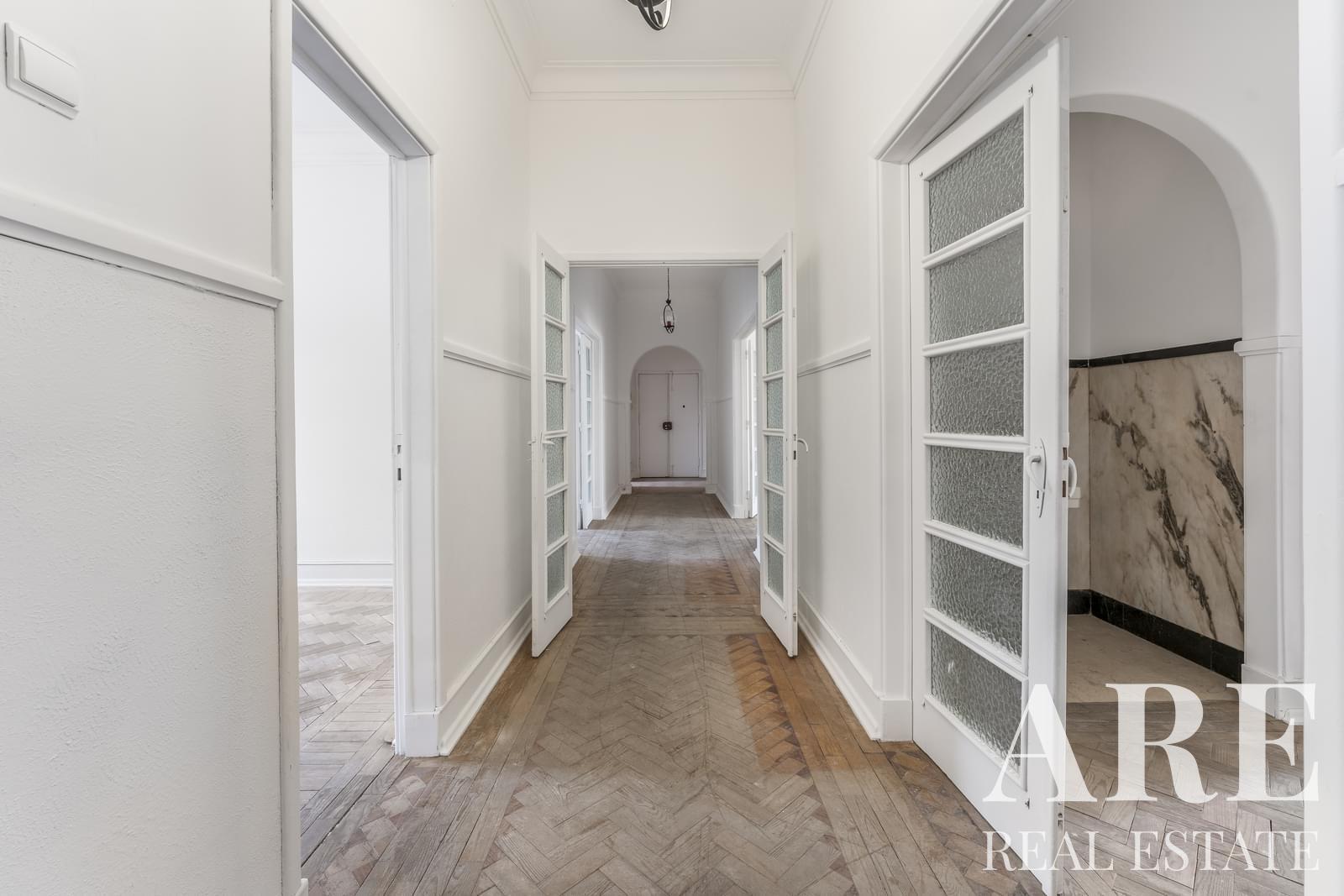 6-bedroom apartment offers 243 m² of gross construction area and is ready for full renovation. With high ceilings and classic architecture, it features generously sized rooms and a well-designed layout with excellent potential to create a unique and refined home.