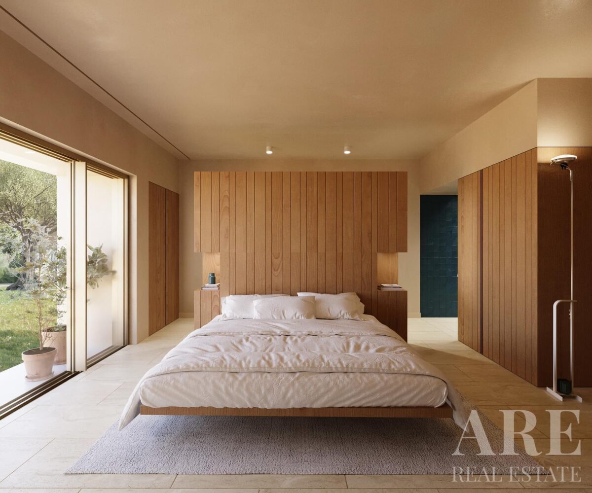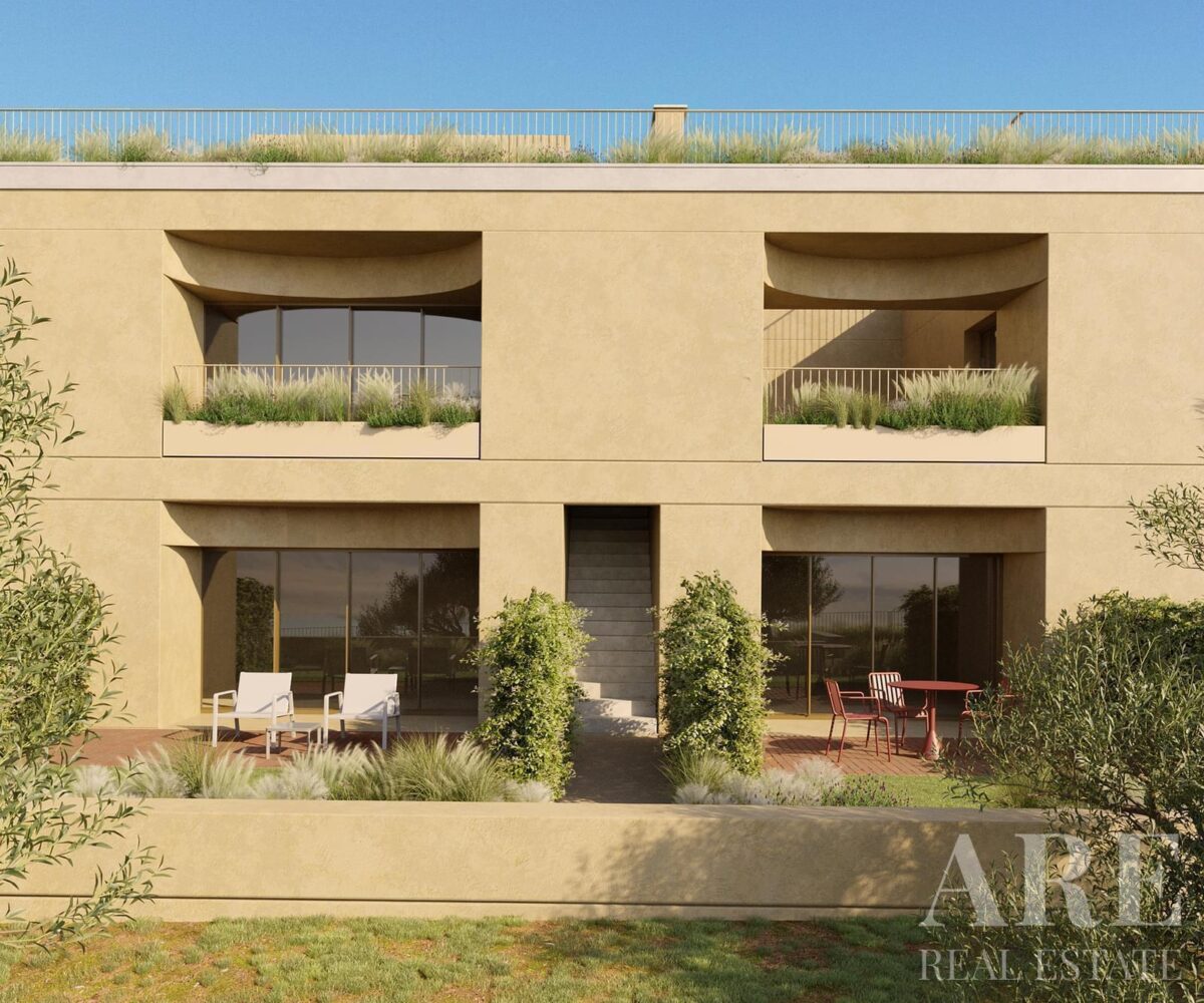Apartment for sale in Olive Green condominium, located in Alcacer do Sal. This upper-market 2-bedroom, 2-bathroom single-storey apartment is situated on the ground floor and has an interior area of 86.0 m². The property features a garden view, south-facing terraces, a garage for one car, and a storage room. It includes access to an outdoor pool, air conditioning, solar panels for water heating, and a gym equipped with fitness machines. With a construction year of 2027 and full ownership, this apartment is available with Lisbon Property for the asking price of € 465 750.