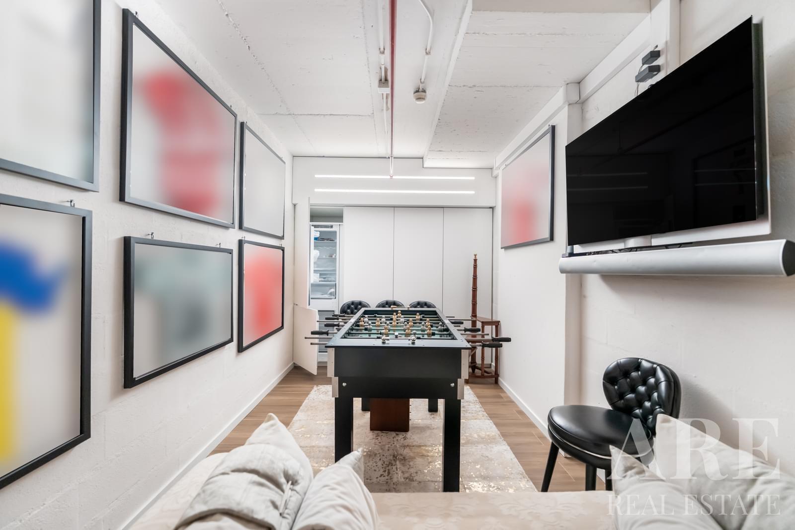 The 120 m² terrace includes a jacuzzi, dining area, barbecue, outdoor shower, and panoramic views. A private box garage has been converted into a premium “Men’s Cave.”