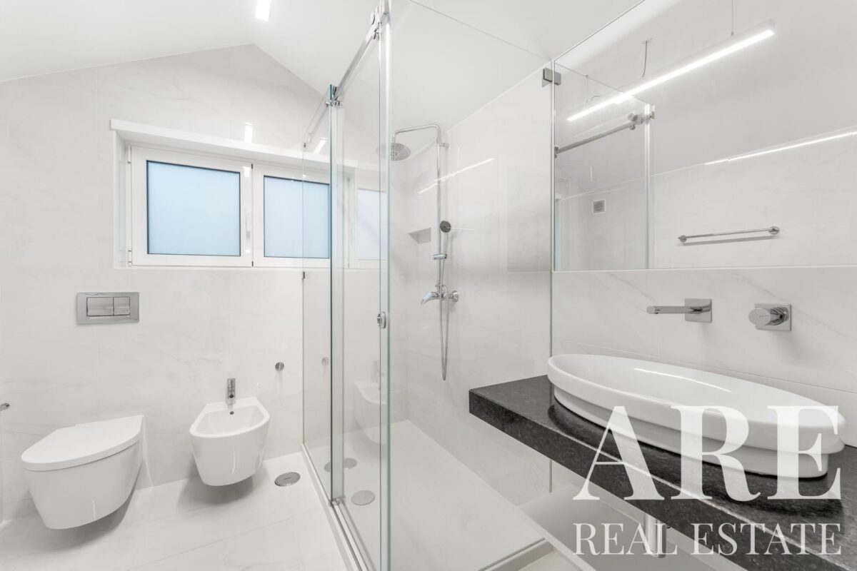 The apartment is air-conditioned and equipped with solar panels for water heating, enhancing energy efficiency. It comes with full ownership and includes a garage with space for one vehicle. The asking price for this apartment is € 700 000.