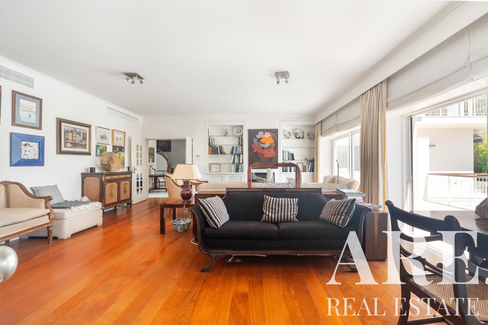 Villa for sale located in Areia, the town of Cascais, the district of Lisbon. This premium 5-bedroom, 7-bathroom villa has a 463.5 m² interior area and sits on a 1,402 m² plot. The property spans the basement, ground floor and first floor, and offers a pool view. Features include an outdoor heated pool, air conditioning, underfloor heating, a fireplace, an alarm system, a 2-car private garage, 1 storage room, balconies, and terraces. Energy rating is B. This property is offered in full ownership by Lisbon Property for the asking price of € 3 400 000.