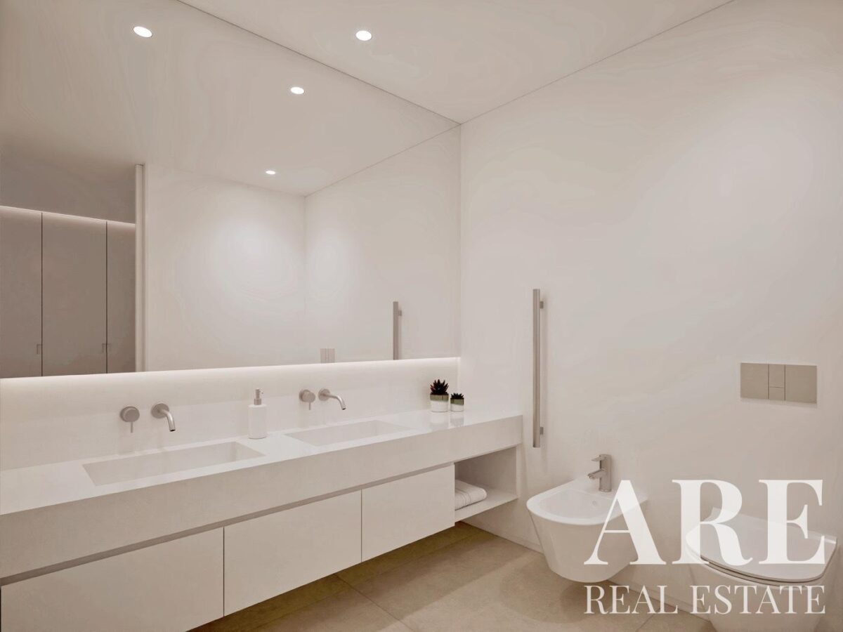 Villa for sale in Light Houses condominium, located in Lagos, Lagos. This 4-bedroom, 5-bathroom villa spans 300 m² of interior space on a 577 m² plot and is spread across three floors: basement, ground floor, and first floor. The property features an ocean view, an outdoor pool, balconies, and terraces. It includes a private garage for one car, a storage room, air conditioning, underfloor heating, an alarm system, solar panels for water heating, and electrical shutters in every room. With a south-facing orientation and an energy rating of A+, this villa is for sale in full ownership by Lisbon Property for the asking price of € 2 400 000.