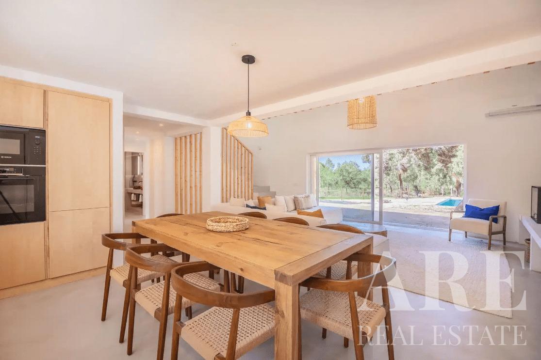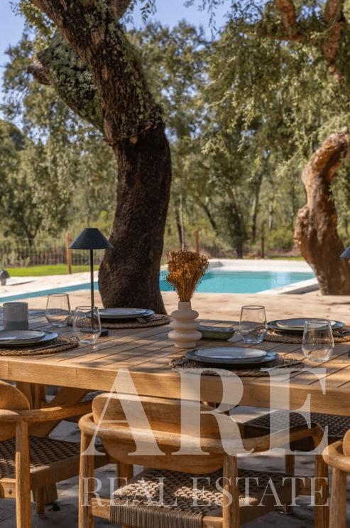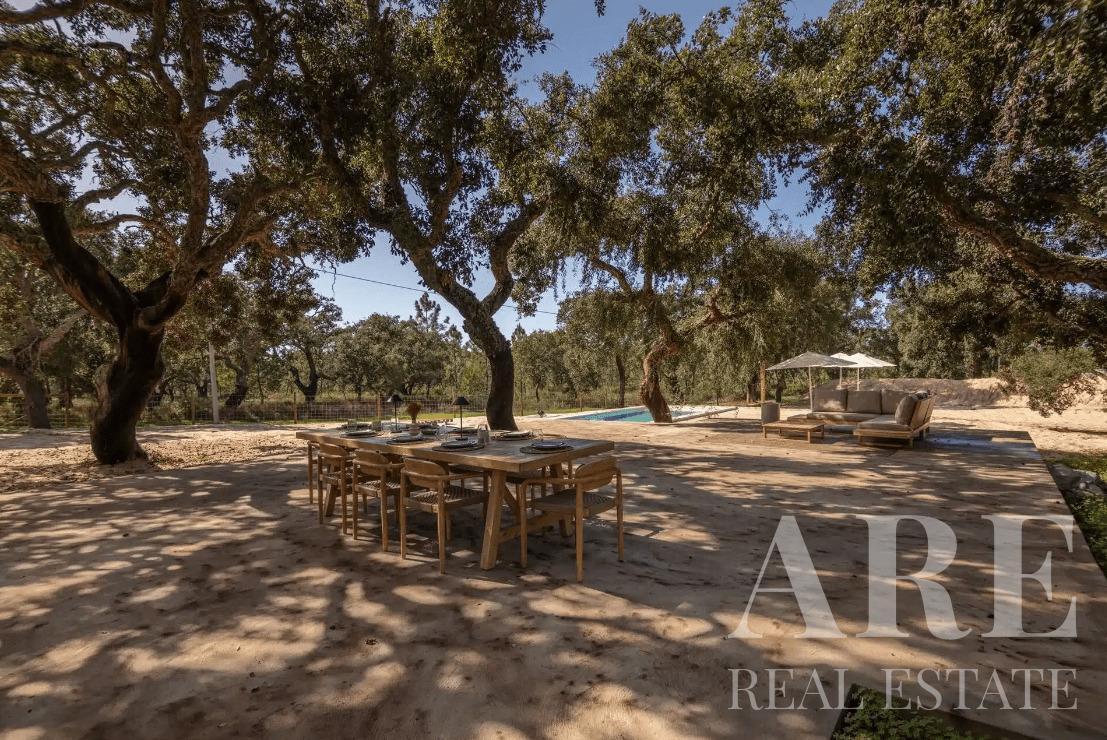 Villa for sale in Melides, located in Grandola, Setubal. This premium 3-bedroom, 2-bathroom single-storey villa offers a pool view. It has an interior area of 108.0 m² on a 4619.0 m² plot and includes an outdoor pool. The property is equipped with air conditioning and a fireplace. This villa is for sale in full ownership by Lisbon Property for the asking price of € 1 450 000. The villa sits on a 4,600 m² plot, just 2 minutes from Melides centre.