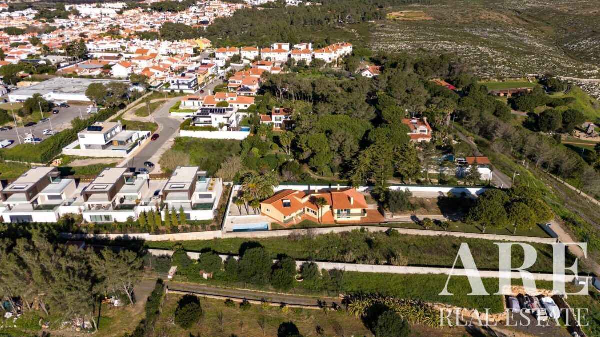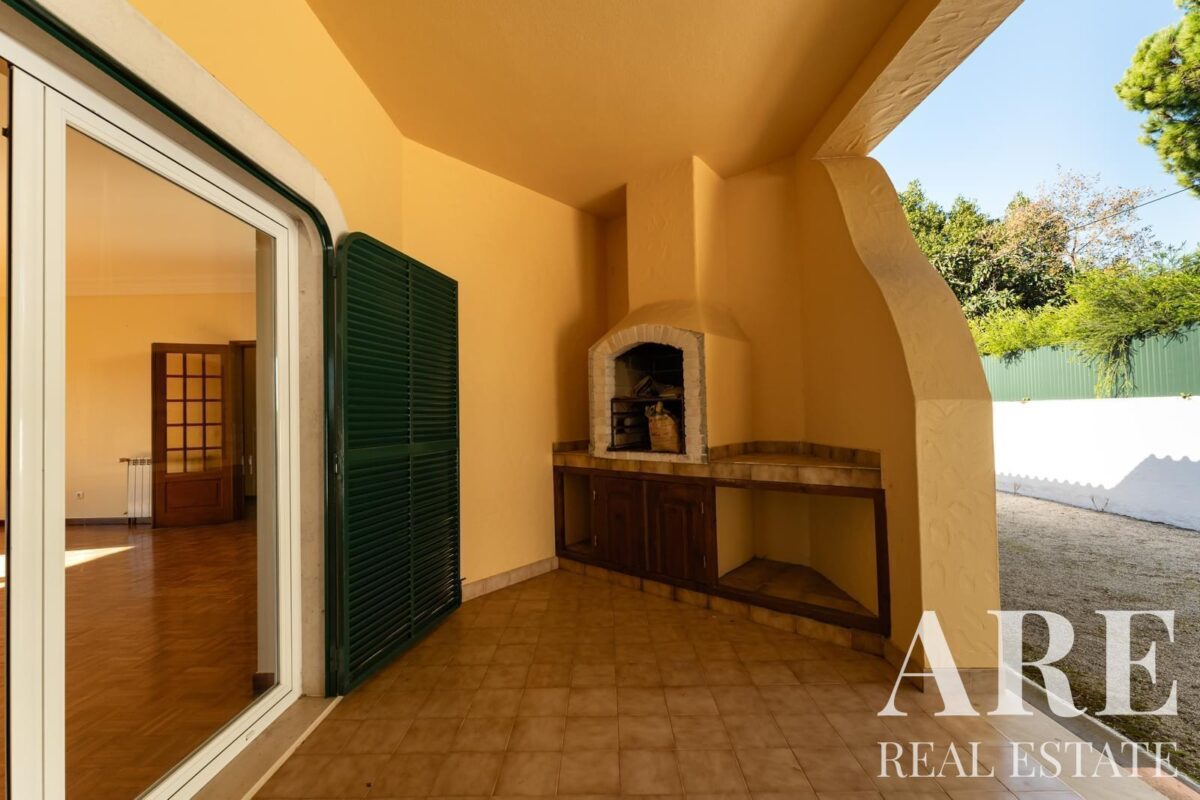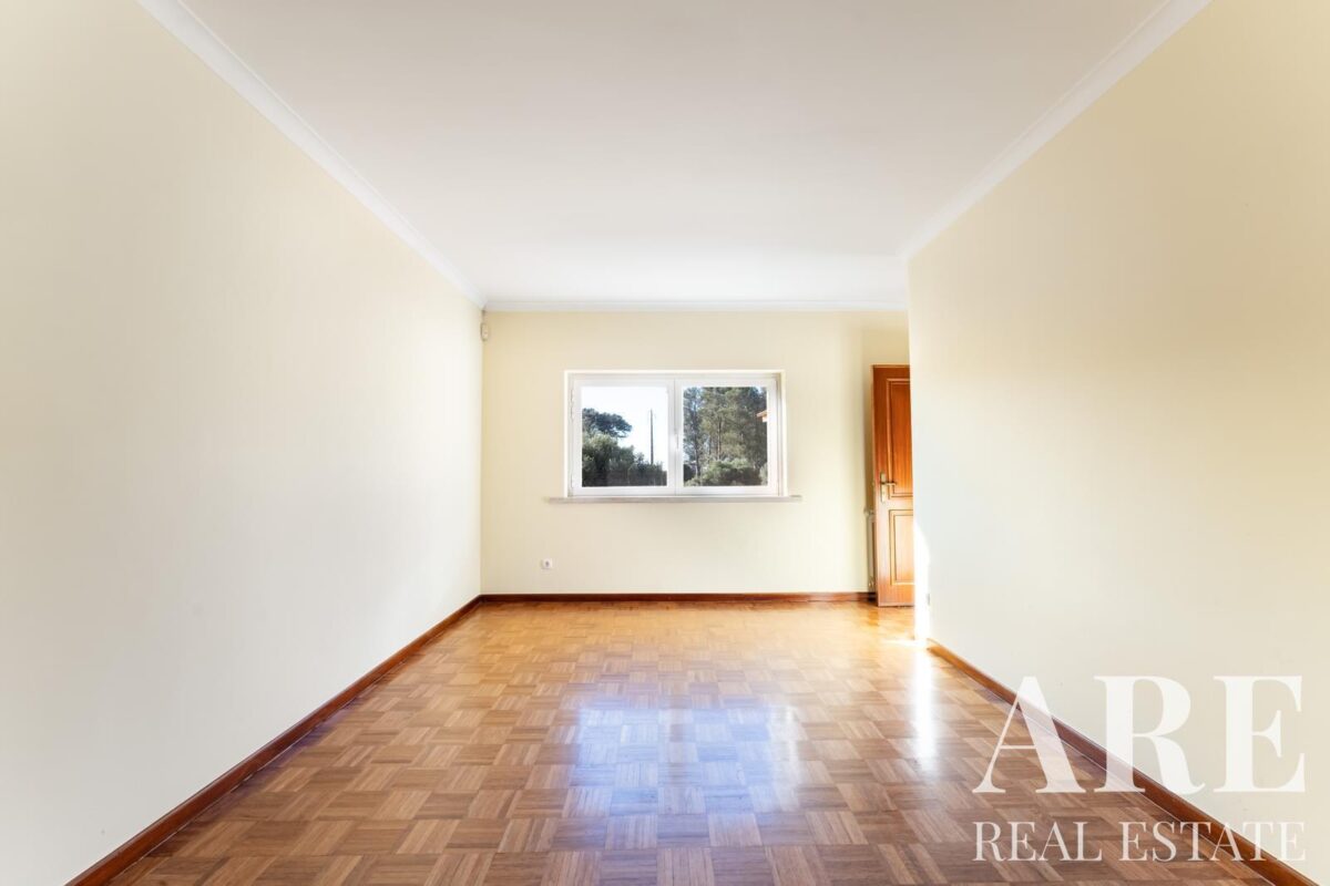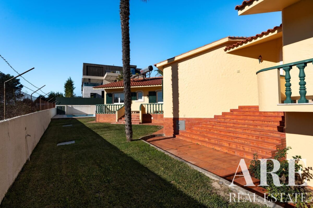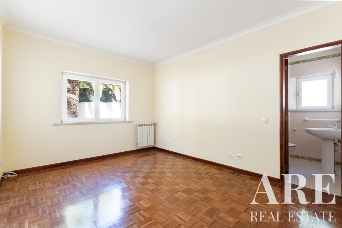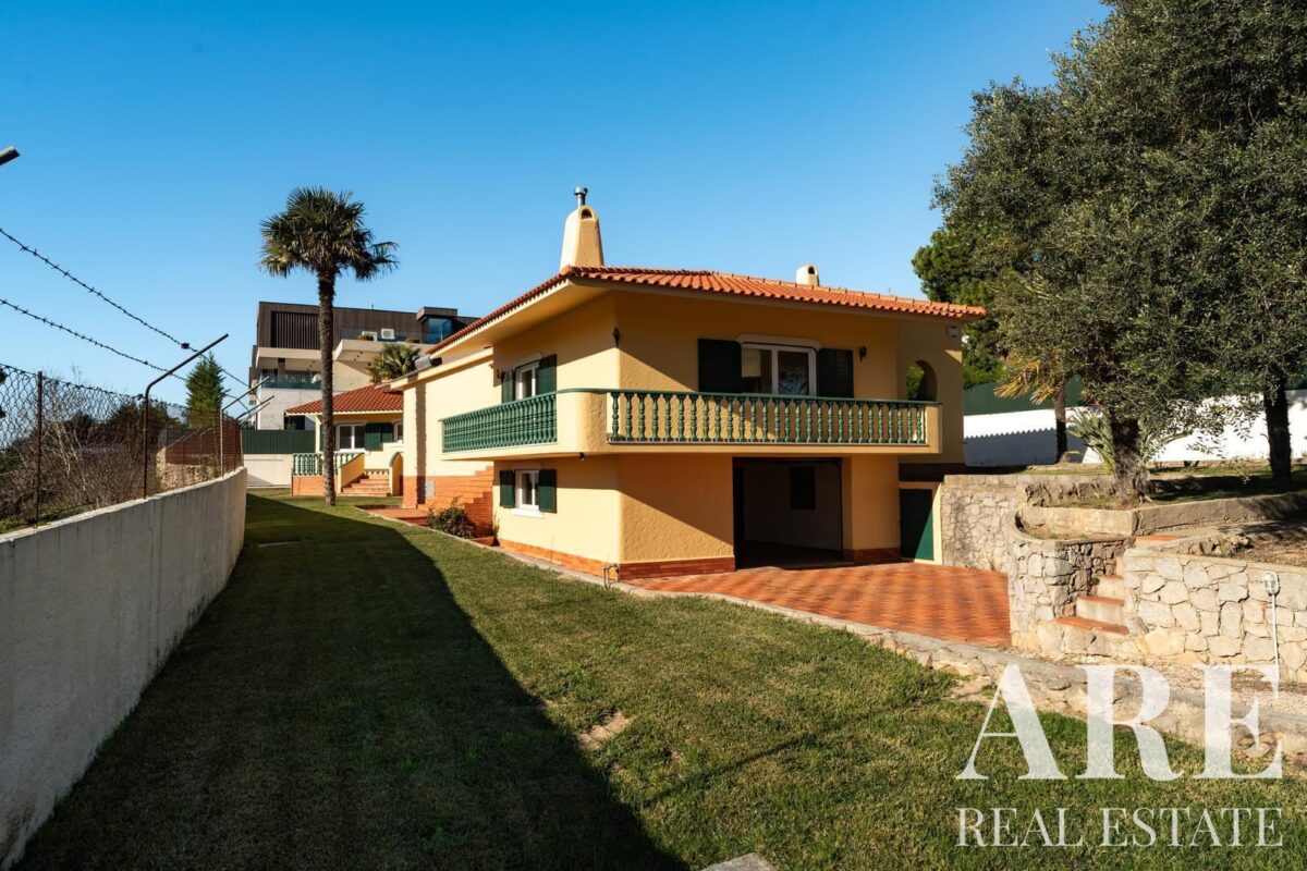 Located in the peaceful area of Murches, Cascais, this 4-bedroom, single-story villa sits on a 2,250m² plot. The home blends traditional Portuguese architecture with great potential for customization. It features a spacious garage, storage room, and wine cellar in the basement, and on the ground floor, it offers 4 large suites, an office, a social bathroom, a dining room, a bright living room with a fireplace, a kitchen with direct access to the backyard and barbecue area, plus a laundry room. The exterior includes a large garden, a swimming pool, and stunning views of the surrounding nature. The villa also benefits from central heating, and solar panels for hot water, and is located near the Sintra-Cascais Natural Park, with easy access to Cascais, Sintra, and Lisbon.