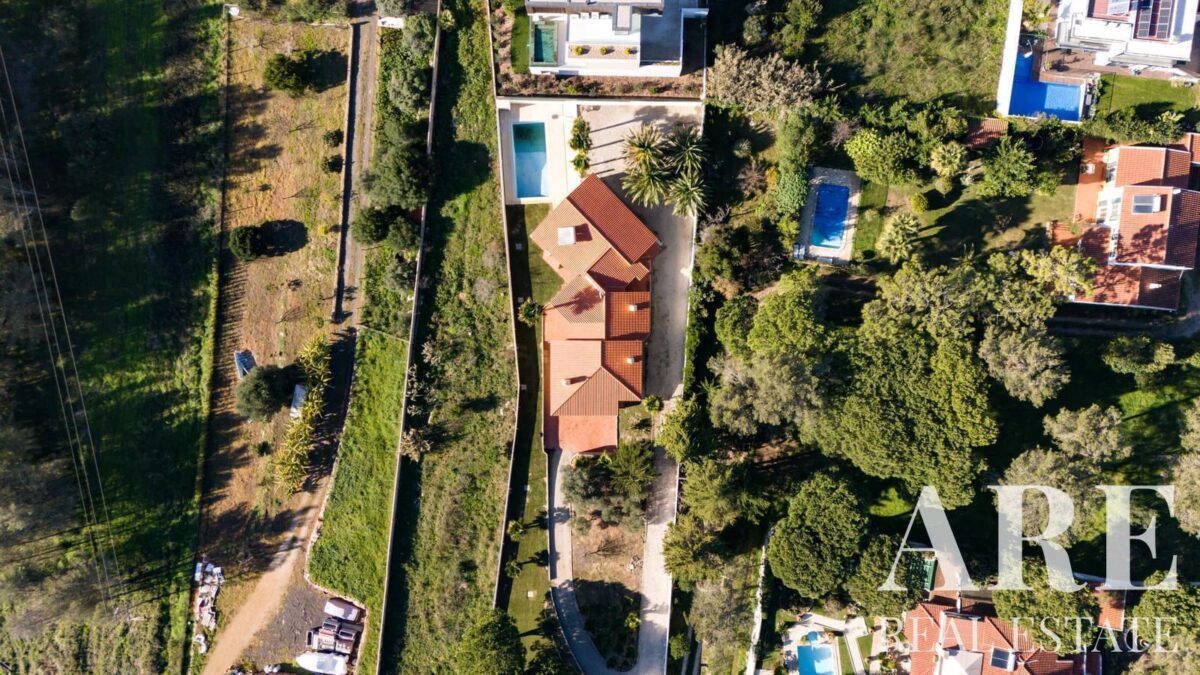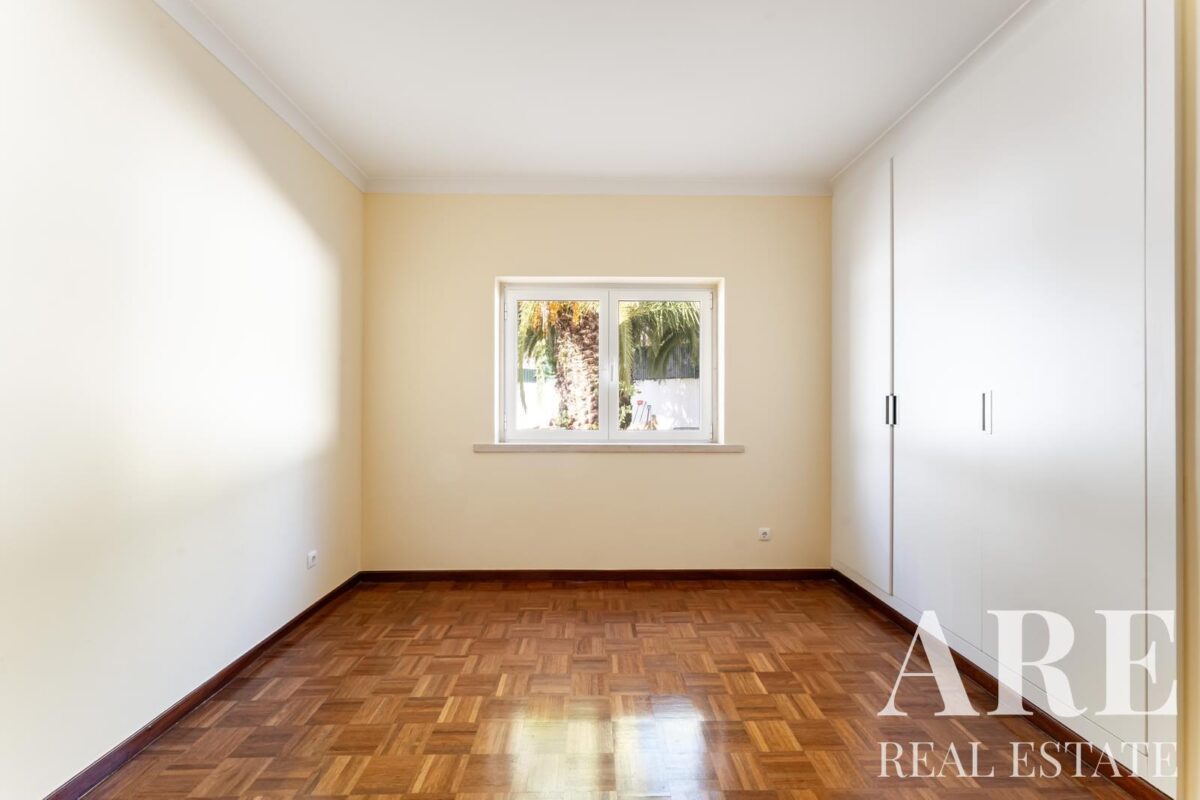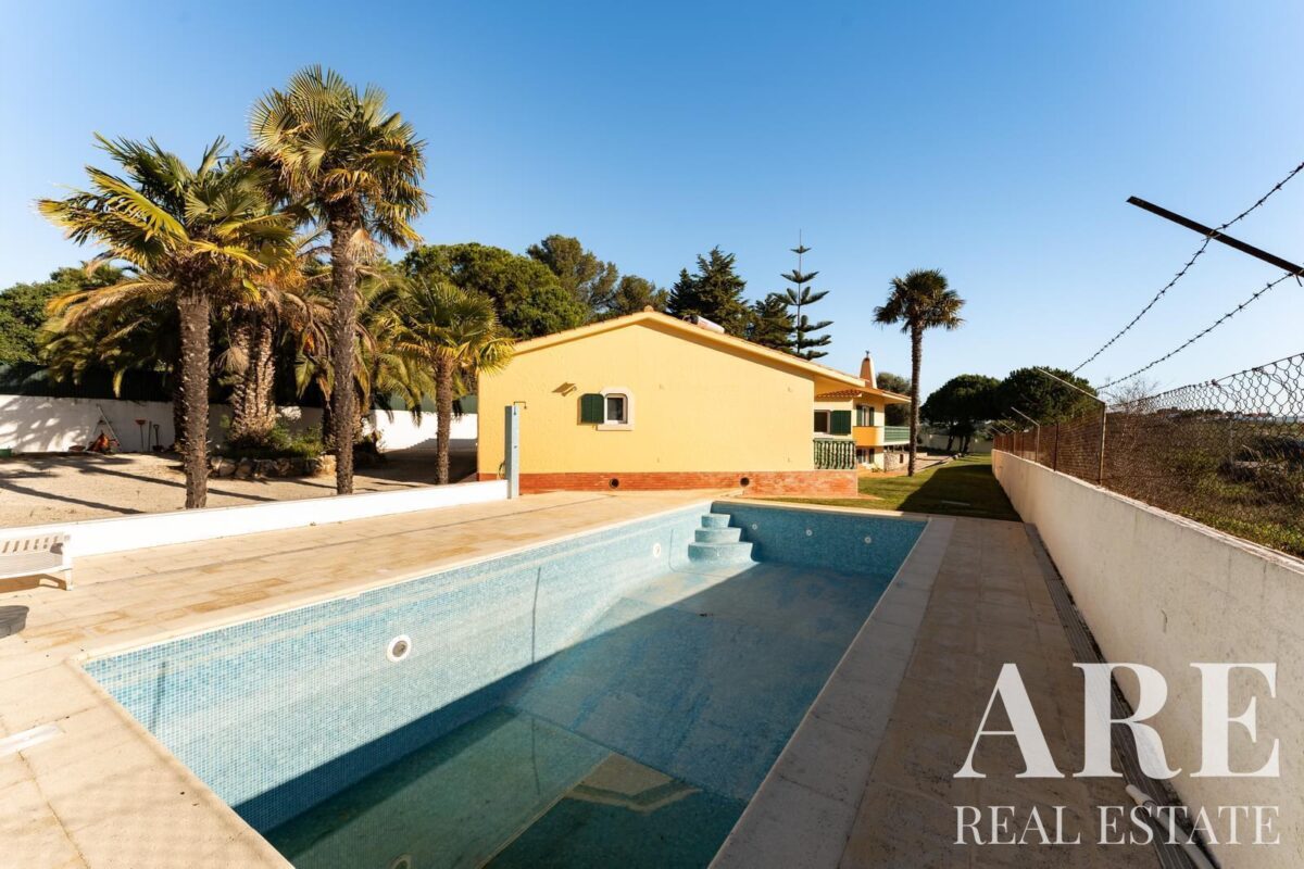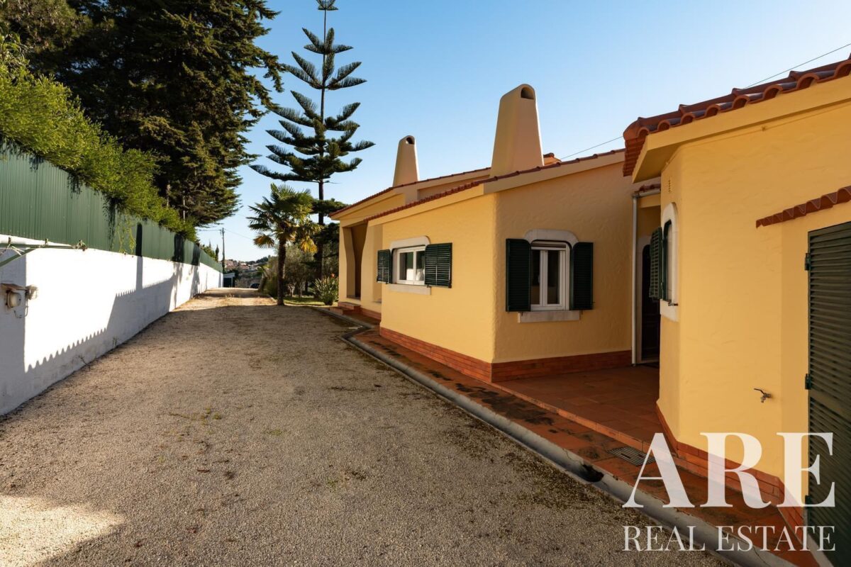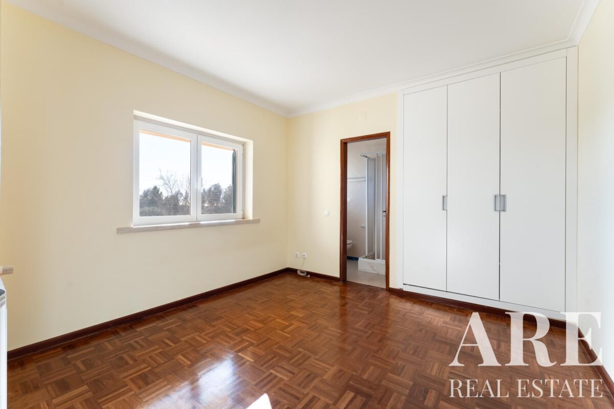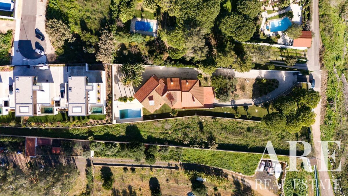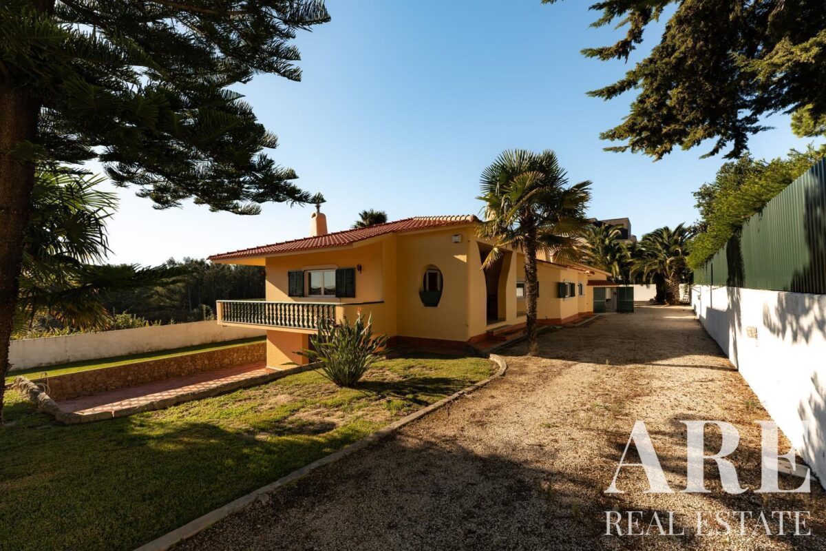 Located in the peaceful area of Murches, Cascais, this 4-bedroom, single-story villa sits on a 2,250m² plot. The home blends traditional Portuguese architecture with great potential for customization. It features a spacious garage, storage room, and wine cellar in the basement, and on the ground floor, it offers 4 large suites, an office, a social bathroom, a dining room, a bright living room with a fireplace, a kitchen with direct access to the backyard and barbecue area, plus a laundry room. The exterior includes a large garden, a swimming pool, and stunning views of the surrounding nature. The villa also benefits from central heating, and solar panels for hot water, and is located near the Sintra-Cascais Natural Park, with easy access to Cascais, Sintra, and Lisbon.
