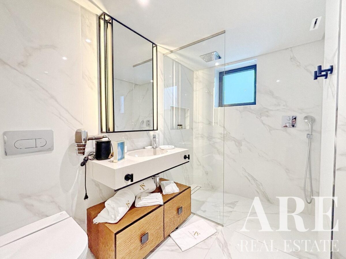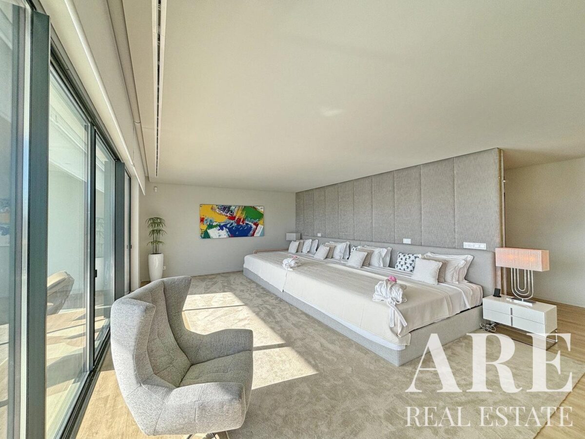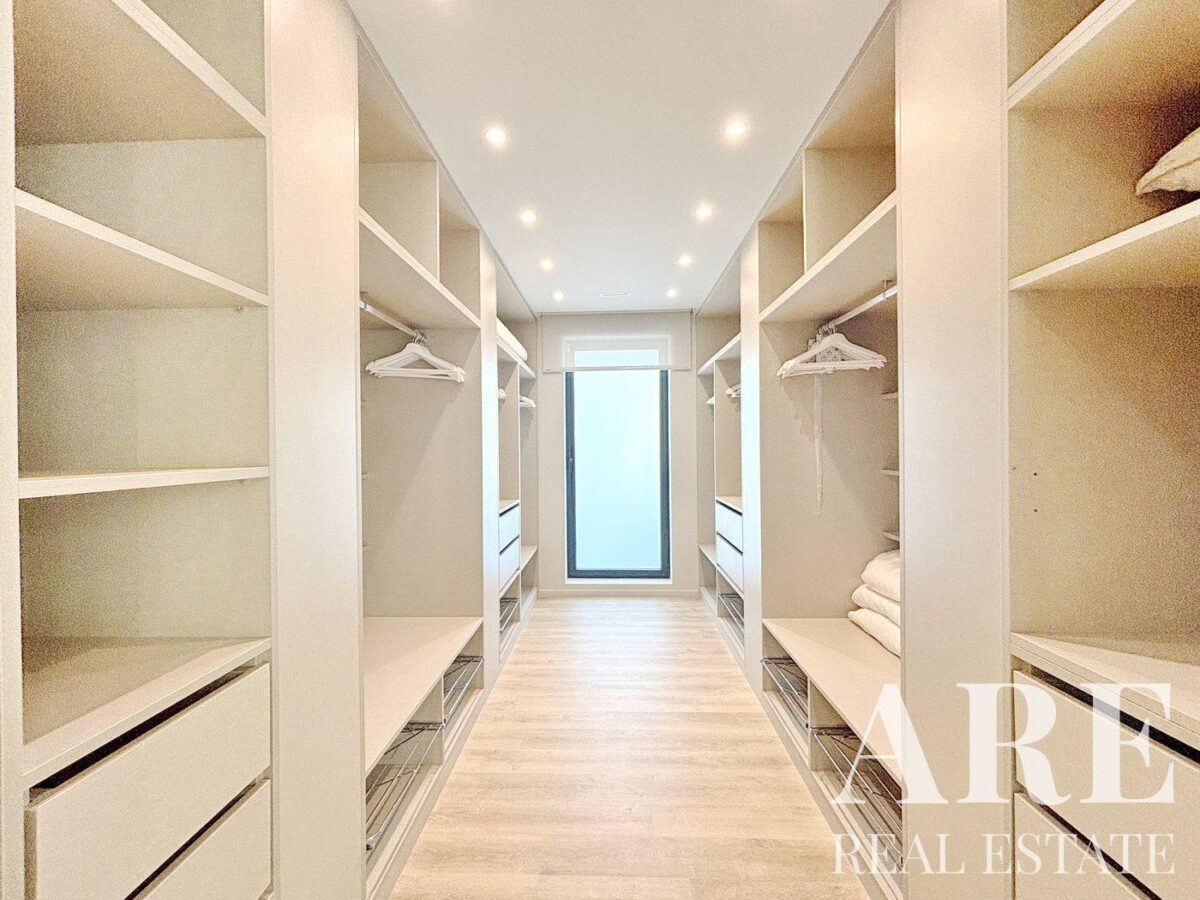 This stunning south-facing villa in Vilamoura sits on a 6856 sqm plot and offers 956.5 sqm of living space across three floors. With 5+2 ensuite bedrooms, including a master suite with a walk-in closet and private balcony, this home is designed for luxury living. The villa features spacious living areas like a double-height lounge, TV room, and dining area for 20 people. There is also a cinema room, game room, private gym, Turkish bath, and sauna. Outdoors, enjoy a large saltwater pool, multiple terraces, BBQ area, vegetable garden, and playground. The villa is fully equipped with modern amenities like air conditioning, underfloor heating, central vacuum, Sonos sound system, and top-notch security. A large garage and carport space complete the property, making it ideal for those seeking comfort and entertainment.