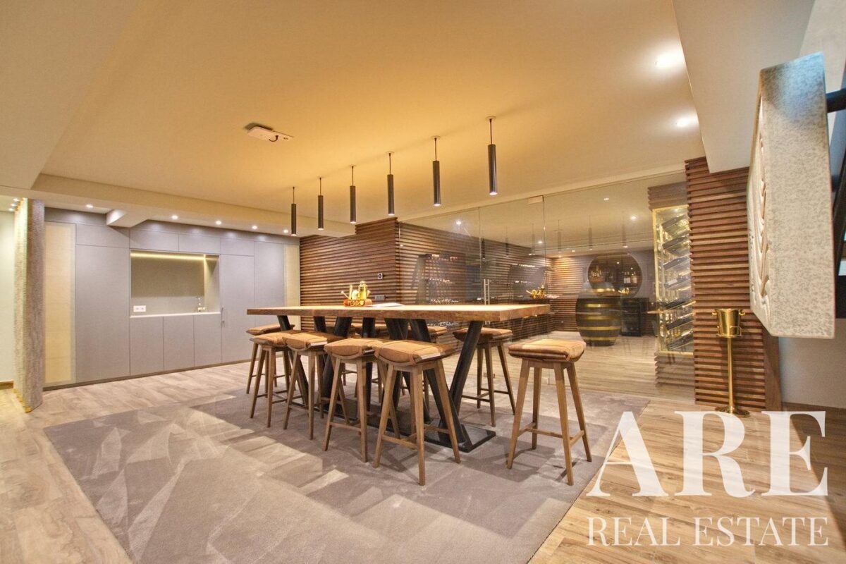 Villa for sale in Pinhal Velho condominium, located in Vilamoura, Algarve. This 8-bedroom, 10-bathroom villa features a basement, ground floor, and first floor, with a total interior area of 956.5 m² and a plot size of 6,859 m². The property offers a pool view, balconies, and terraces, and includes a private garage for 4 cars. It is equipped with air conditioning, underfloor heating, and a fireplace for optimal comfort. The villa also includes a storage room, a gym with fitness machines and dumbbells, a cinema room with an audiovisual system and game console, and a SPA with a sauna and Turkish bath. Additional features include electrical shutters in every room, solar panels for water heating, and an energy rating of A. The villa is facing south and is available for full ownership. Furniture is available for negotiation with the property acquisition. This villa is for sale by Lisbon Property for the asking price of € 13 200 000.