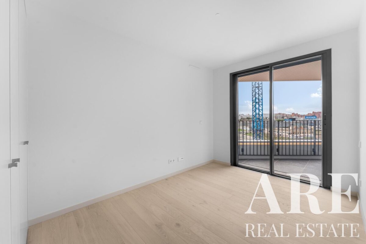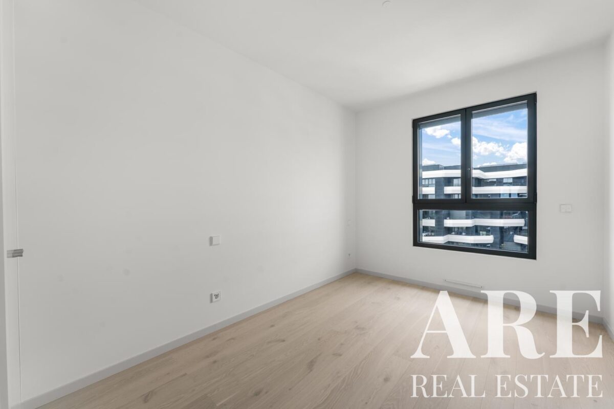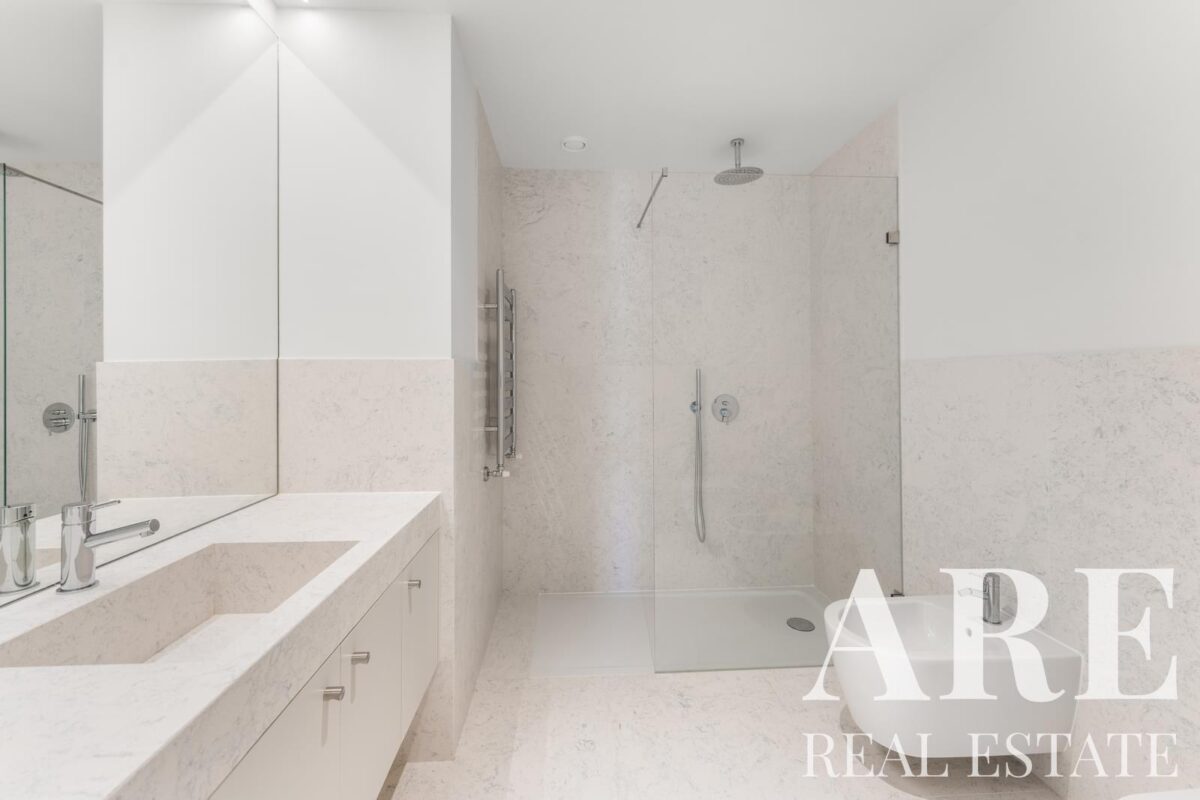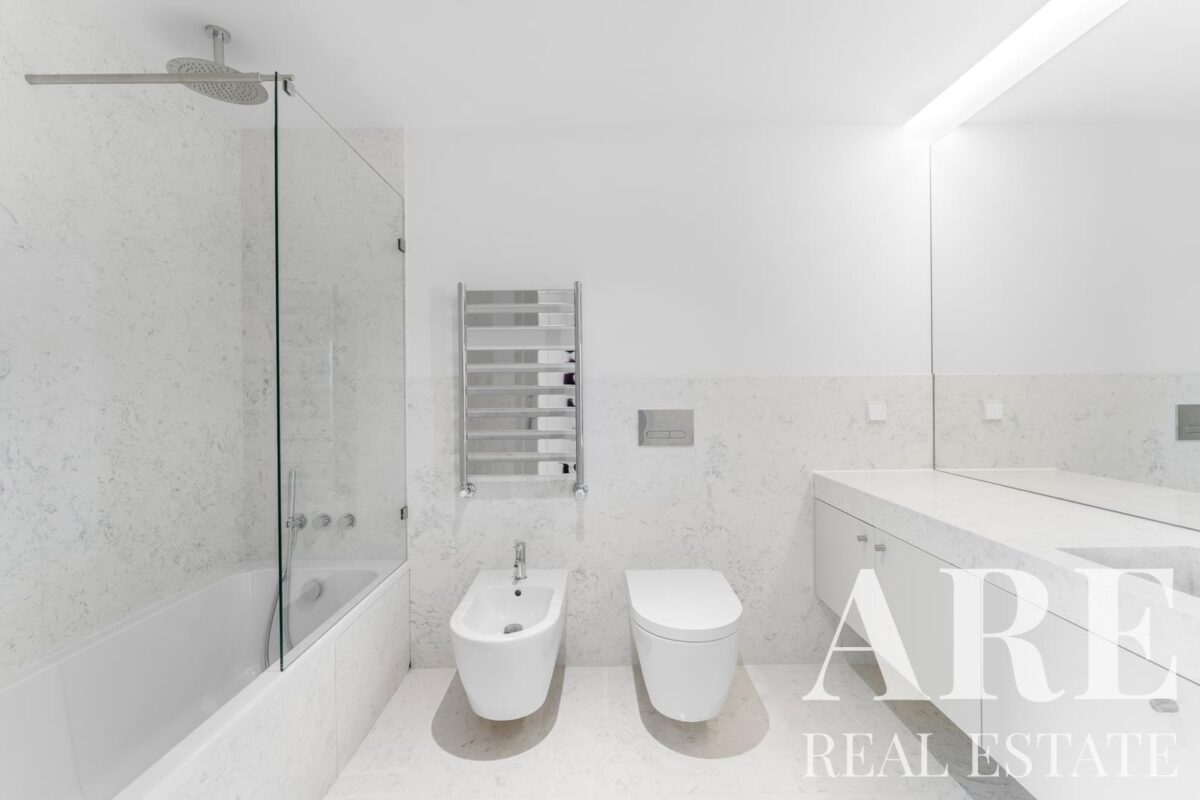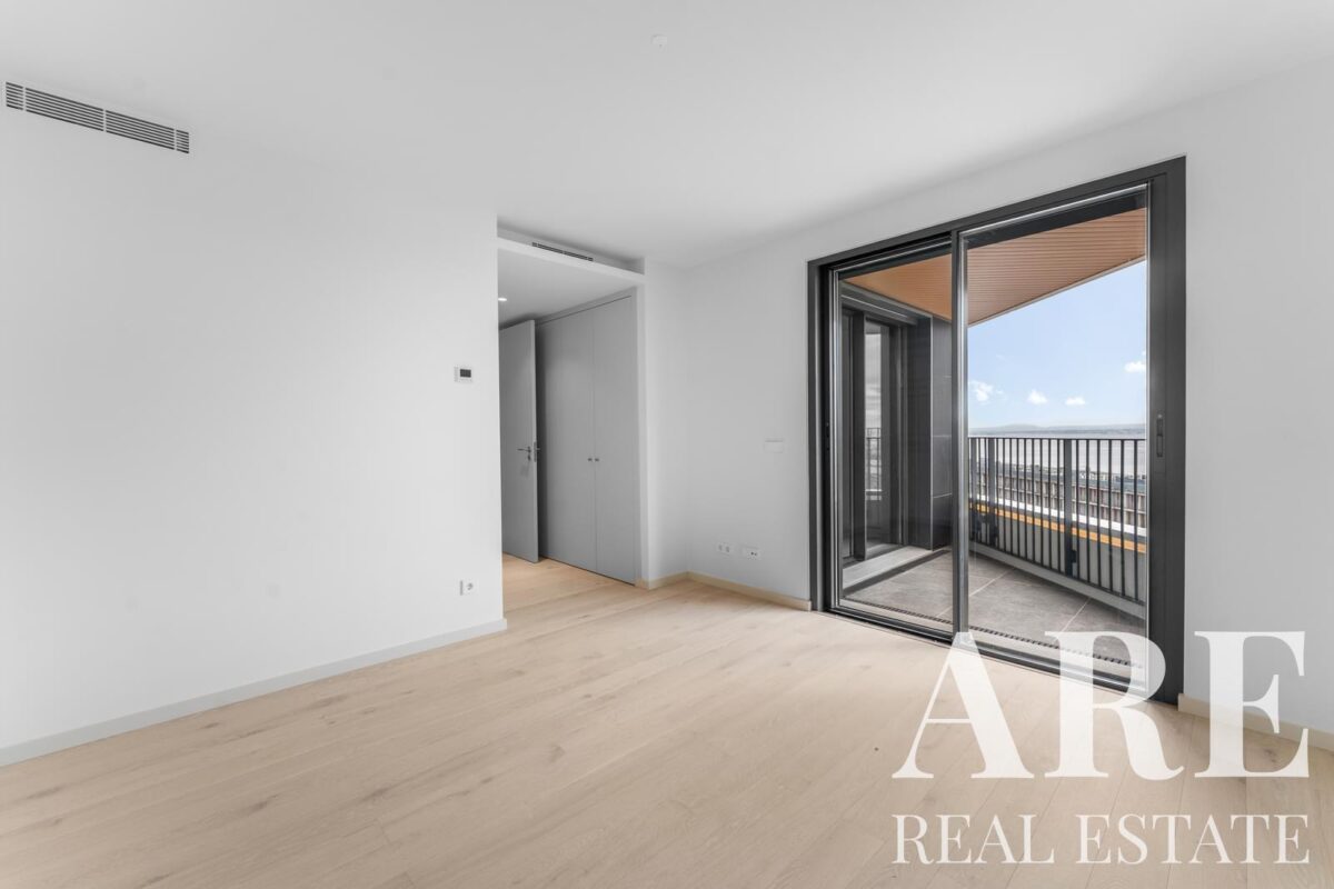 Este apartamento de um piso no desenvolvimento DISTRIKT oferece 275,2 metros quadrados de área interior com orientação sul. O imóvel contém 6 quartos, 7 casas de banho e múltiplas varandas e terraços que maximizam a exposição solar e as vistas sobre o rio. A construção será concluída em 2026 com classificação energética A, incorporando painéis solares para aquecimento de água.
