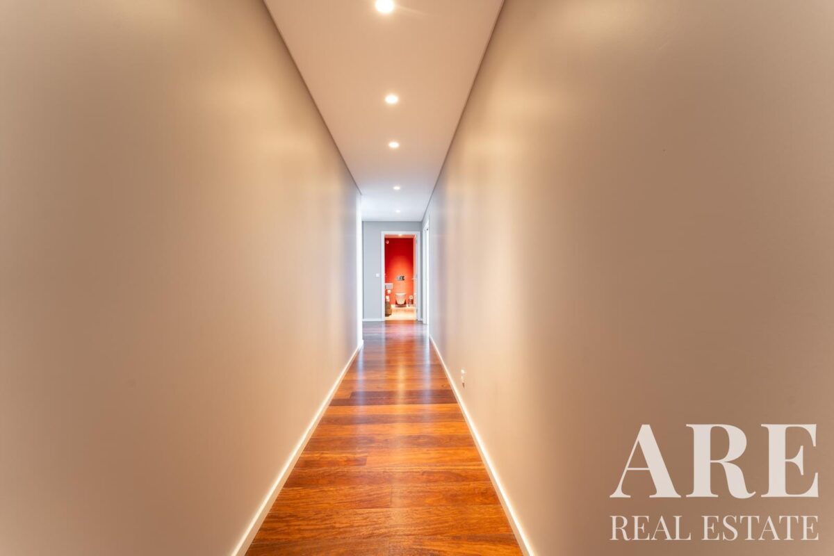 As características distintivas incluem garagem para 4 viaturas e uma arrecadação para arrumação adicional. O sistema de alarme garante a segurança do imóvel, enquanto os painéis solares para aquecimento de água contribuem para a sustentabilidade. Todos os quartos estão equipados com estores elétricos, proporcionando controlo total sobre a luminosidade e privacidade.