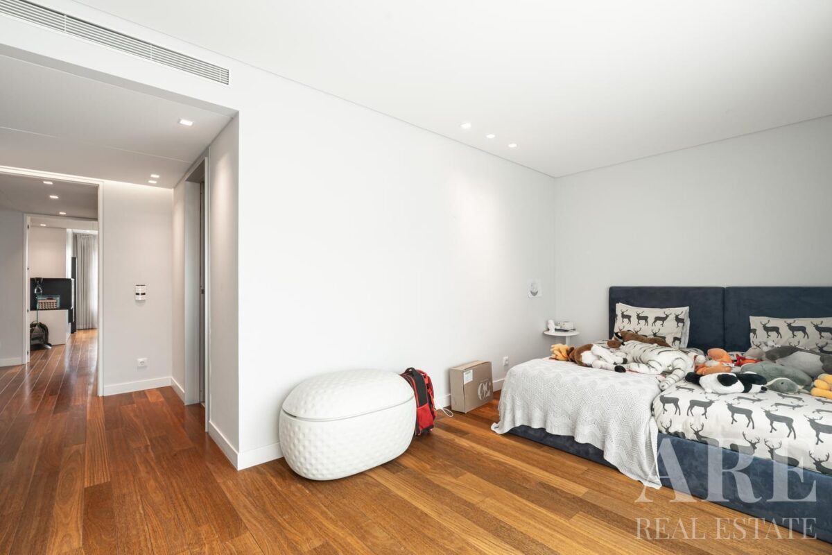O apartamento possui 7 casas de banho, garantindo conforto e conveniência para todos os ocupantes. A piscina exterior oferece uma opção de lazer ao ar livre, enquanto o ginásio equipado com máquinas de fitness proporciona uma alternativa para exercícios internos. A segurança é reforçada por uma equipa de segurança dedicada, garantindo tranquilidade aos residentes.