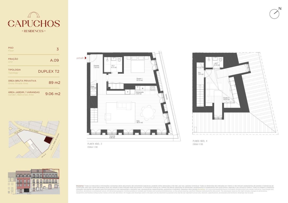 Apartamento para venda em Campo Mártires da Pátria, Lisboa, Grande Lisboa, Portugal, com 2 quartos e vista jardim. Imóvel residencial Premium. Este apartamento duplex está localizado no prestigiado Capuchos Residences e ocupa a penthouse no último andar. Com uma área interior de 89 metros quadrados, o apartamento é bem distribuído e oferece um ambiente confortável e moderno.