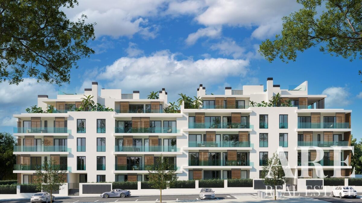 O apartamento tem uma área interior de 197 metros quadrados e está inserido num lote de 3.294,6 metros quadrados. Com orientação oeste e previsão de conclusão em 2026, possui classificação energética A. O imóvel dispõe de piscina exterior e jardim, complementados por terraços que ampliam as opções de lazer ao ar livre.