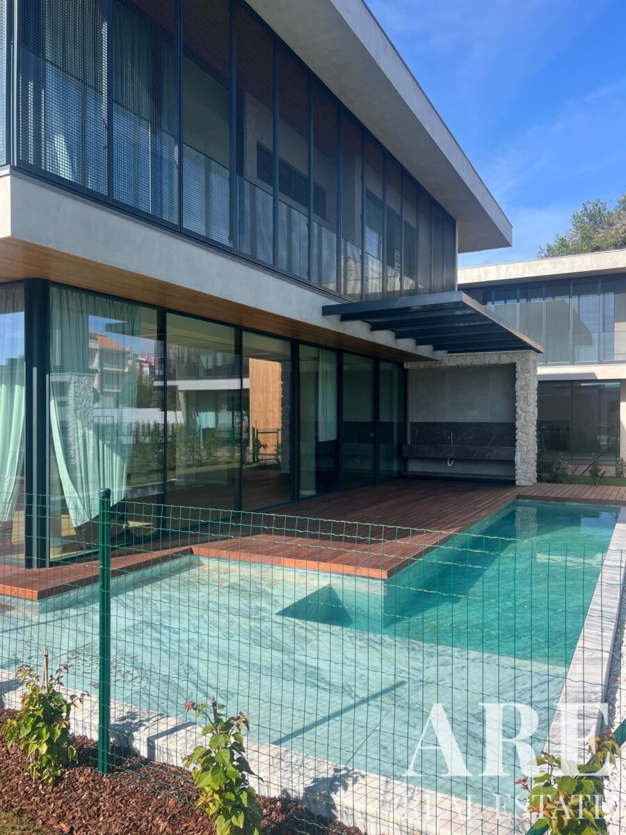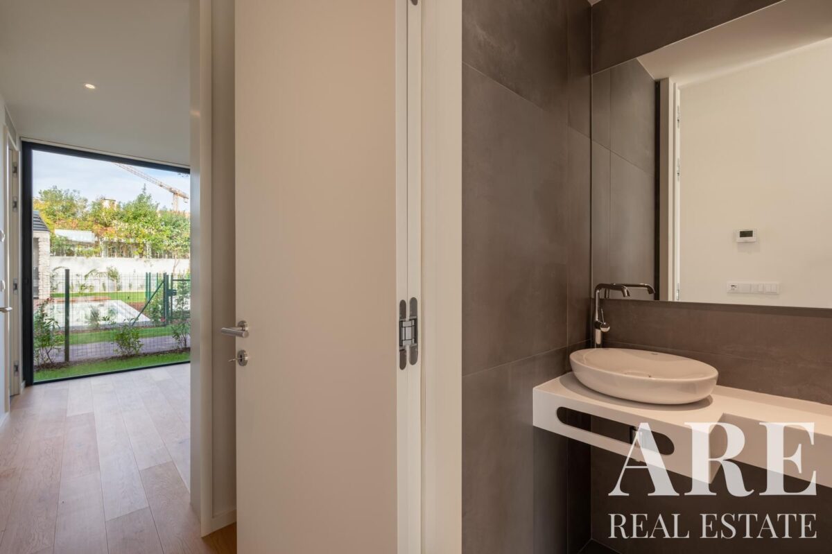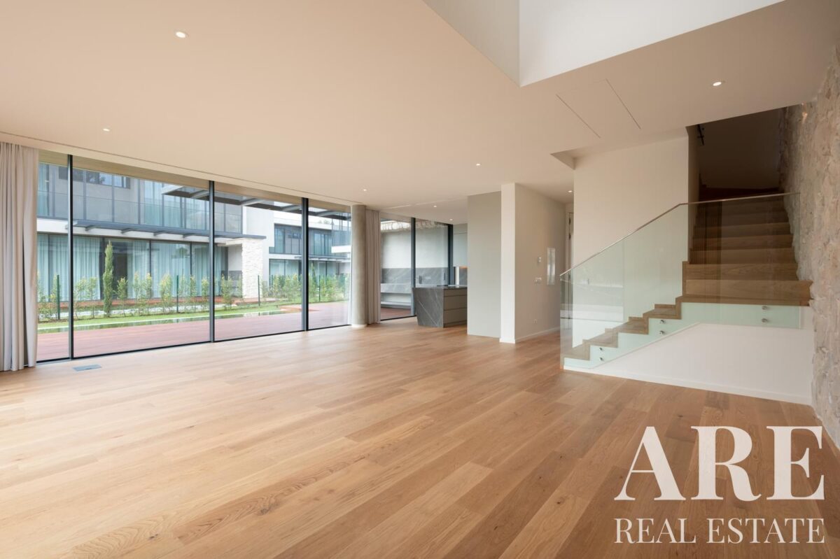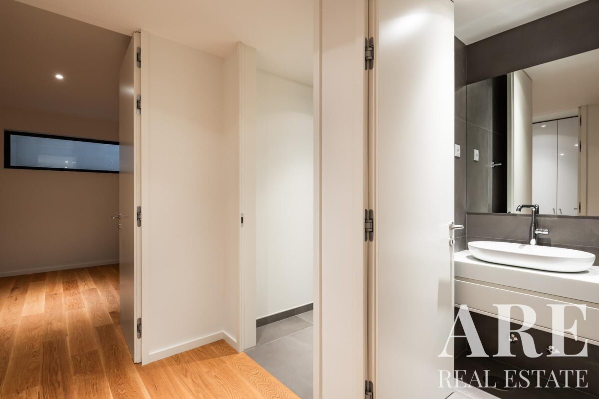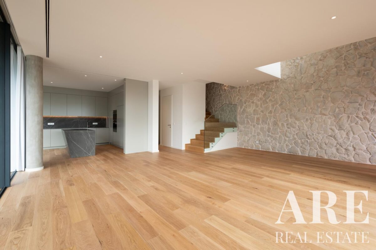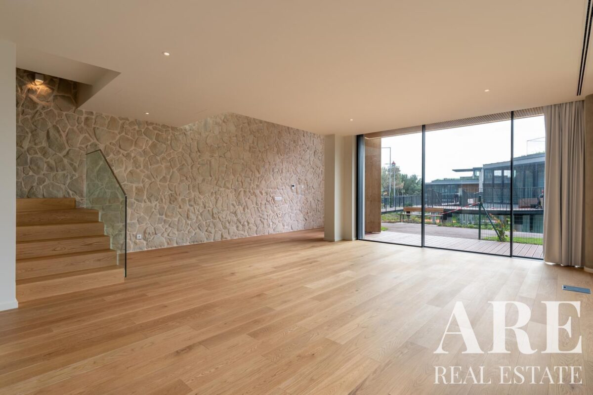 Esta moradia nova de construção oferece 317,66 metros quadrados de área interior distribuídos por cave, rés-do-chão e primeiro andar. O imóvel faz parte do desenvolvimento Boutique Vilas e conta com 5 casas de banho, proporcionando amplo conforto para toda a família. A propriedade inclui varandas e terraços que complementam os espaços interiores.