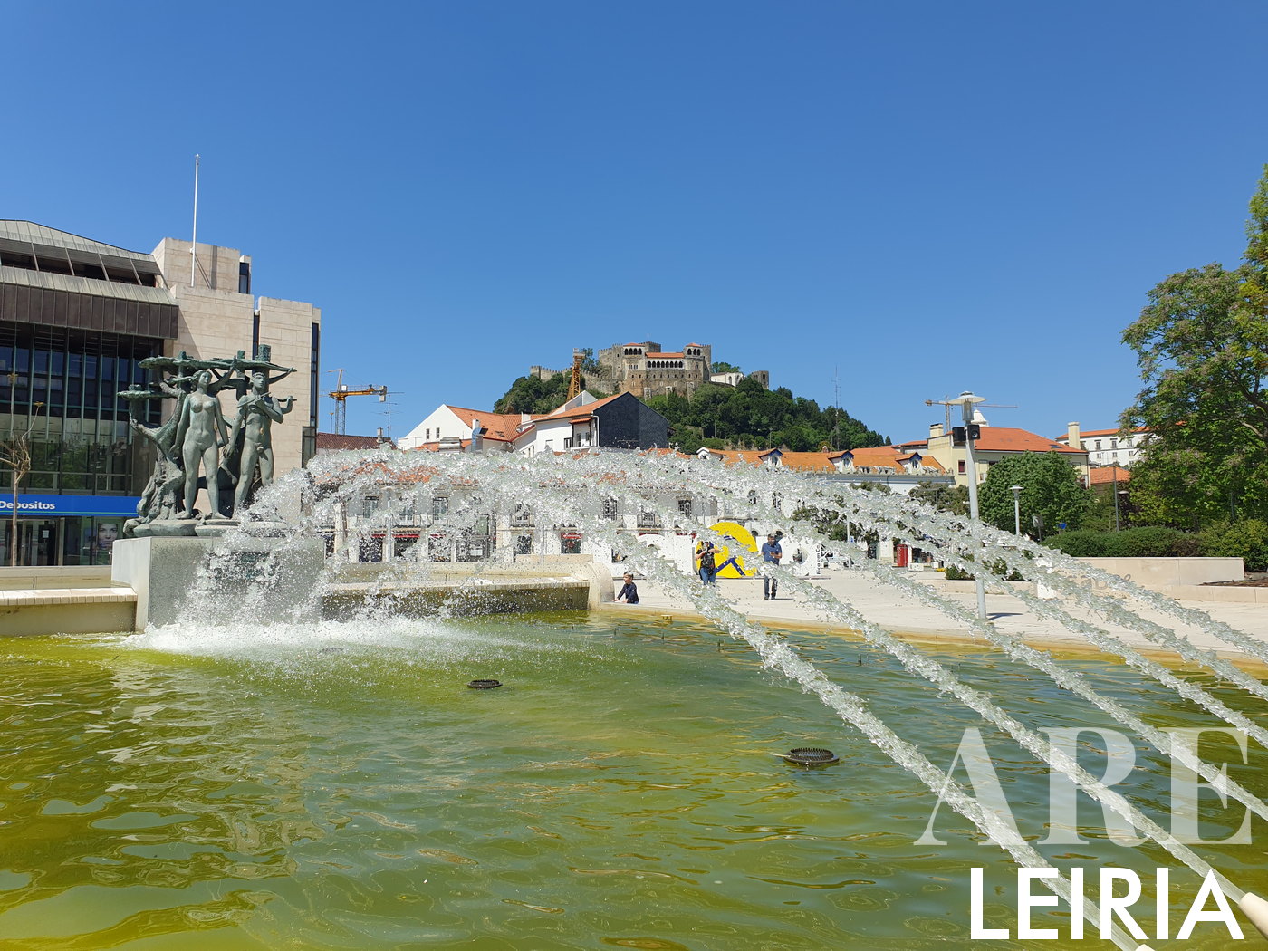 Praça Damião Goa Damão e Diu, com a fonte luminosa no centro da cidade de Leiria, a escultura em bronze, alusiva aos rios Lena e Lis, sendo o Lena um afluente do Lis que nasce na Serra Daire e desagua “no cidade de Leiria”, enquanto Lis nasce perto de Leiria, no lugar de Fontes, na freguesia de Cortes, atravessa a cidade e desaguará no Atlântico a norte da Praia da Viera de Leiria.