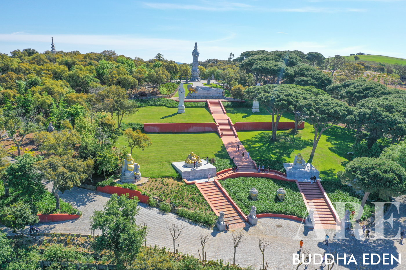 Buddha Eden, na Quinta do Loridos, um jardim de arte ao ar livre, com esculturas asiáticas, figuras de Budas gigantes e lagos.